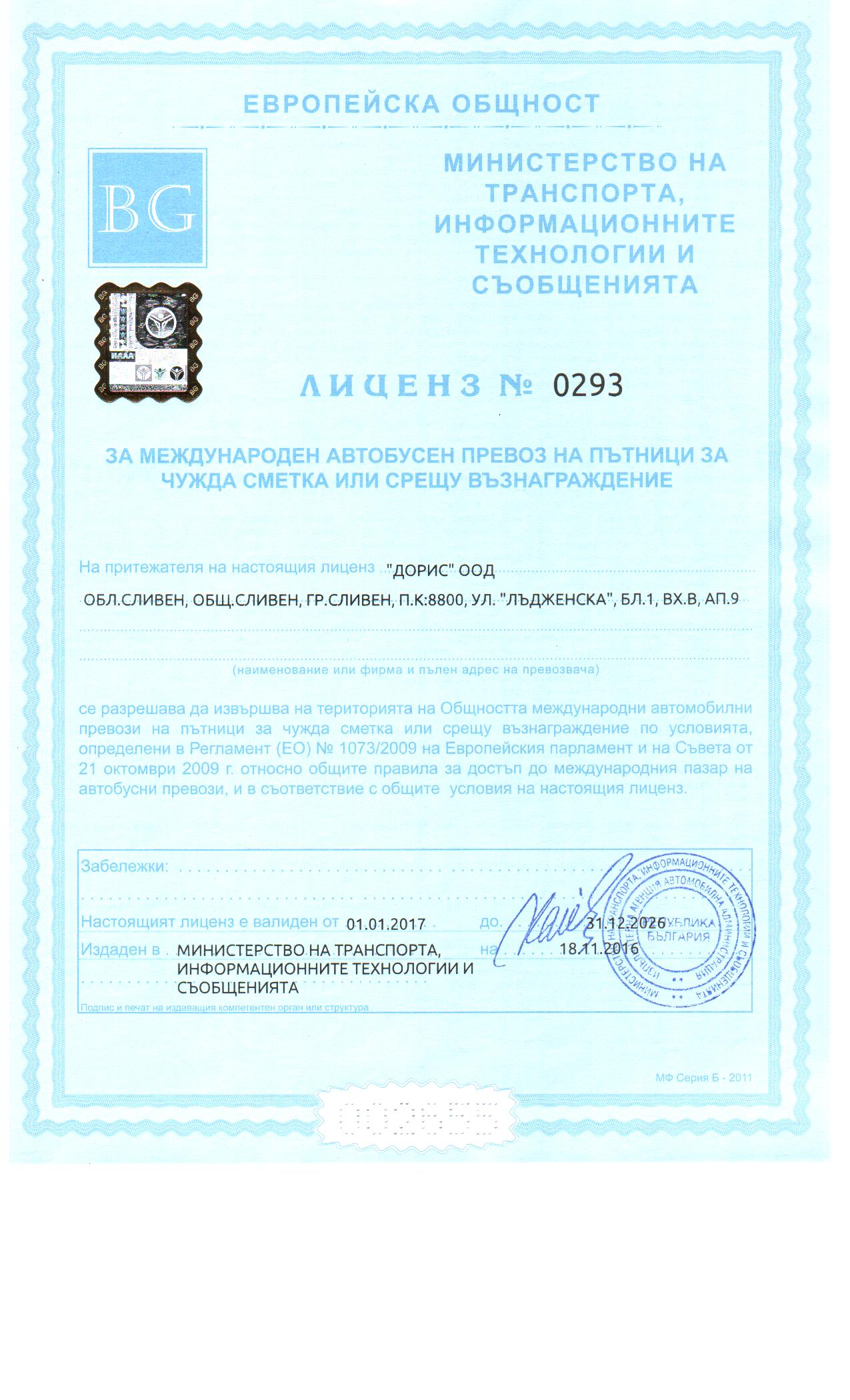 Банкова сметка - Дорис ООД (автобусни билети)