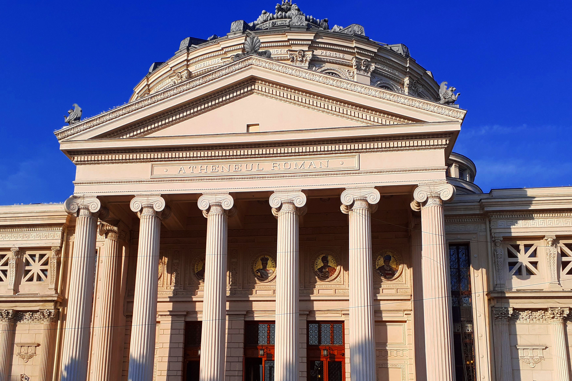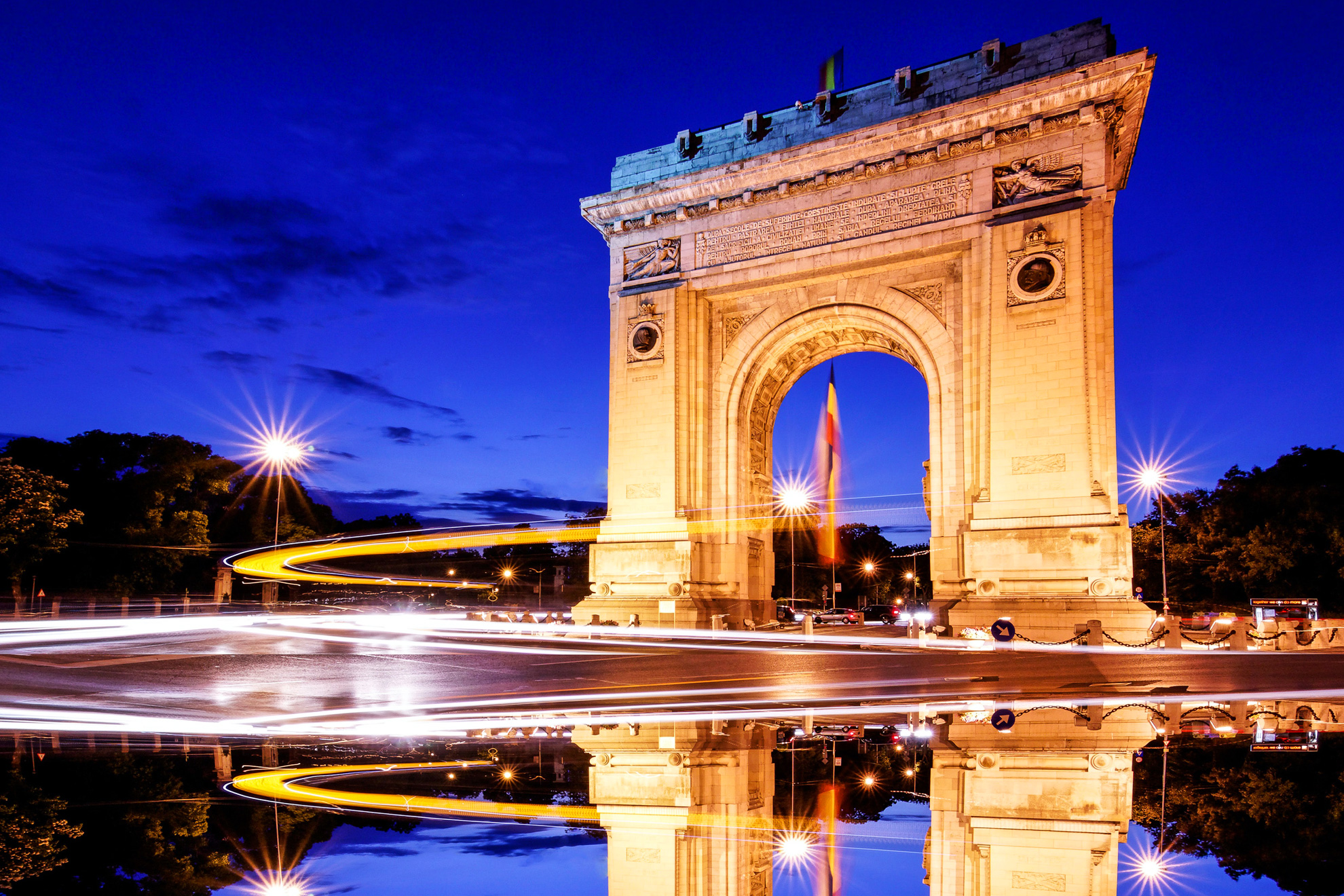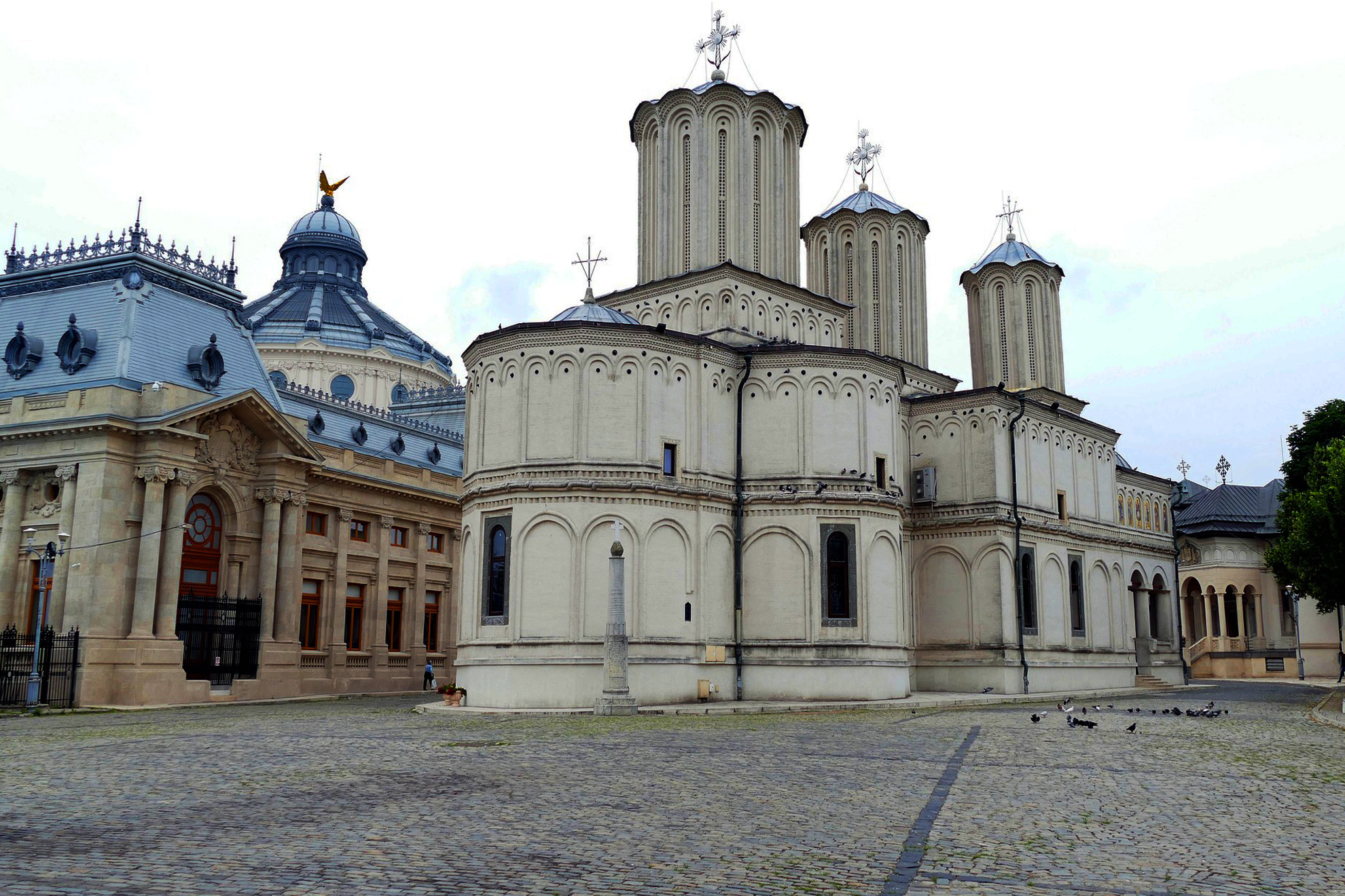 Сградите в центъра на Букурещ са силно повлияни в архитектурен план от френския стил през XIX в. и по-специално - Париж. Не напразно наричат румънската столица „Малкият Париж”. Ще видим много сгради, построени от френски архитекти. Триумфалната арка също напомня своята парижка посестрима. Първоначално арката е била дървена, издигната в памет на загиналите в Първата световна война. По-късно е подсилена и достигнала сегашната си височина от 25 метра. Минаваме покрай Атене – внушителна и красива сграда, с нейния висок купол и дорийски колони, построена с дарения през 1888 г. Народният театър, макар и построен в по-ново време, също поразява със своята архитектура. Патриаршеската катедрала „Свети свети Константин и Елена” е истински архитектурен шедьовър. Построена е в периода 1656 – 1658 г., когато е осветен и храмът. В северната част на вътрешното преддверие се намират мощите на свети Димитър Басарбовски. Вярва се, че мощите му изцерили много хора и извършили безброй чудеса.