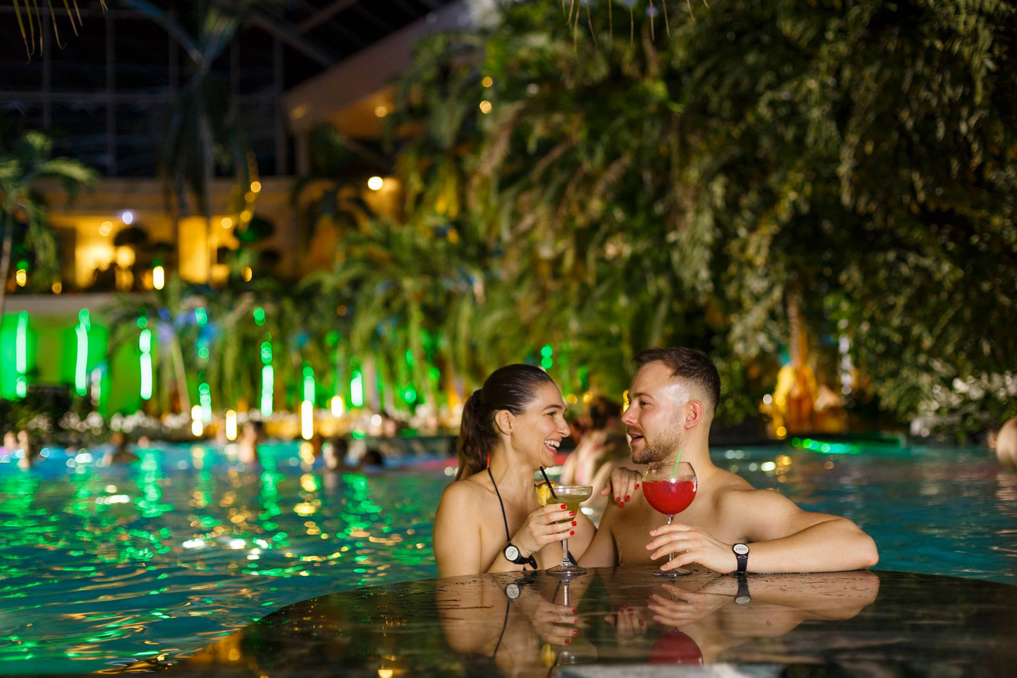 С автобус отиваме до парка. Преди да се отдадем на релакс и забава, получаваме гривна, която се „зарежда” със сумата за зоната, която сме избрали и за периода, който сме избрали да изкараме там (обикновено 4 ½ часа). Парк-център Therme Bucuresti се намира на 15 минути извън Букурещ и разполага не само с топли басейни, а също и с най-голямата закрита и открита градина в Румъния, в която има над 800 хиляди растения и стотици видове дървета, включително и най-голямата плантация на истински палми в Европа.