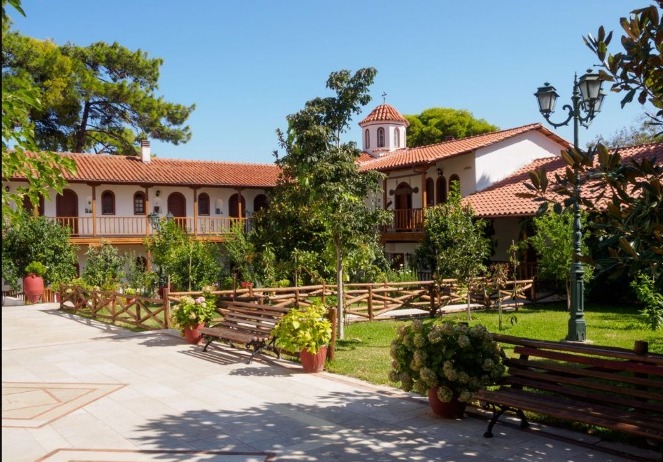 Построен на върха на хълм, манастирът има древна история. При пожар в края на XIX в. изгаря и е построен отново в сегашния си вид. В двора на манастира има малък зоопарк с пауни, гълъби, понита, сърнички и други животни. В манастира има църковен музей. Ще влезем в църквата към светата обител, за да запалим свещичка за здраве. На територията има и малка панорамна площадка, от която се открива забележителна гледка към града, плажа Агиос Йоанис и лагуните.