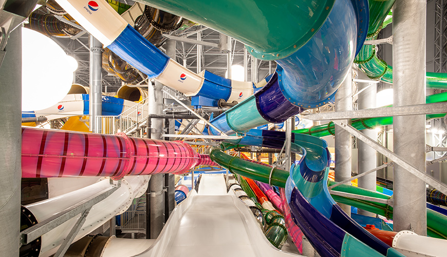 Щe имаме възможност за забавление с 35 водни пързалки, 18 басейна, включително детски и релакс зони, водни геймове, СПА зони, джакузи и топли басейни, водни реки и басейни с вълни. Едно страхотно преживяване не само за деца, но и за възрастни. Комплекса разполага и с открита зона с няколко басейна с топла вода, както и открити водни пързалки. Аквапаркът предлага всичко необходимо за едно незабравимо преживяване, особено за малки приключенци.