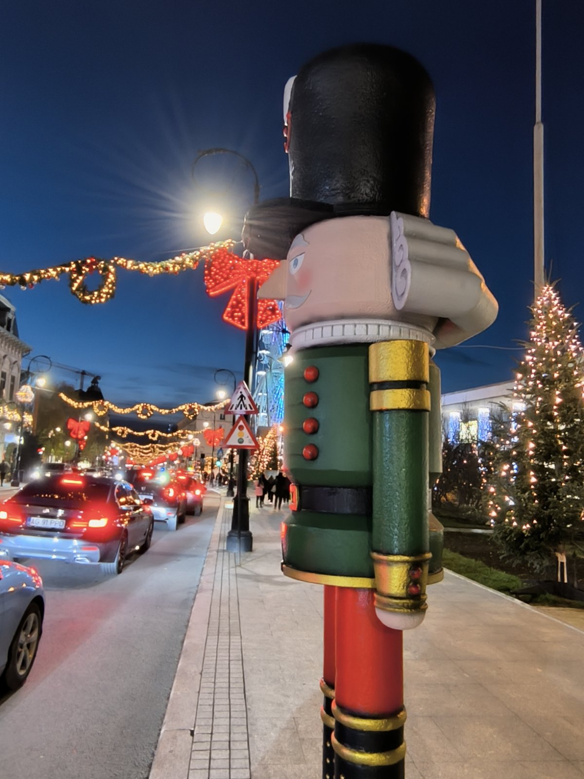 Отправяме се към центъра на града, с ледената пързалка, следвайки хилядите коледни светлинки. На площада ни очакват десетки украсени къщички, детски смях, коледни песни, аромат на греяно вино и печени кестени, уникални сезонни продукти, концерти и театрални изпълнения. В центъра на градчето се извисява Коледната елха, допълваща празничната атмосфера, обляна в хиляди светлинки и богата украса.