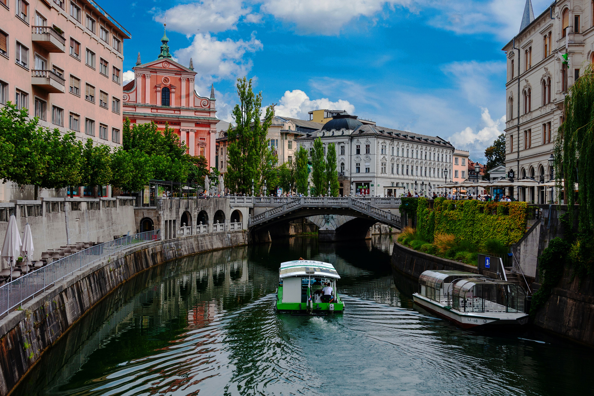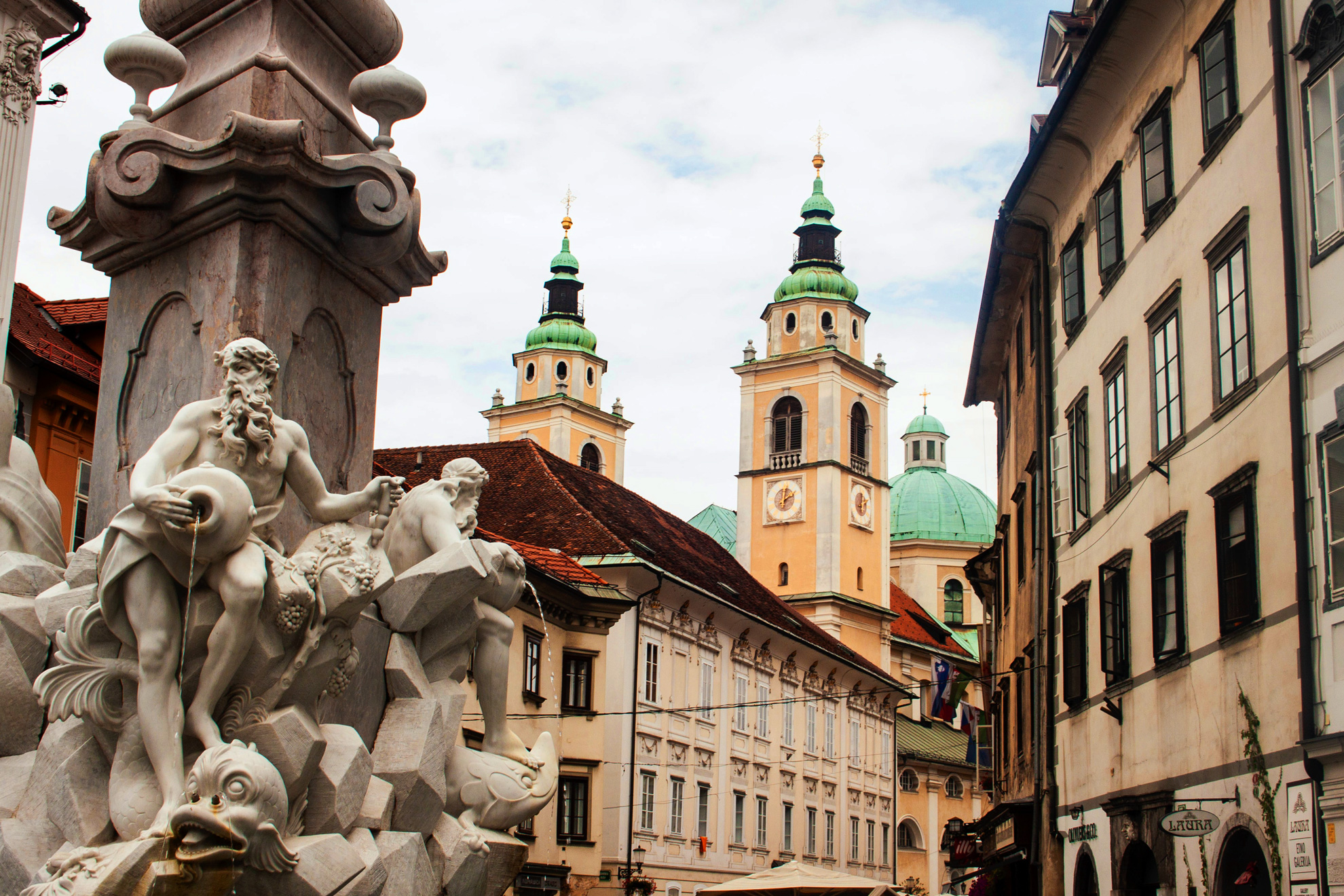 Сред забележителностите на града е катедралата „Св. Николай”. Построена на мястото на по-ранна църква от йезуитския архитект Андреа Поцо през 1707 г., църквата е посветена на св. Никола – покровителят на моряците и рибарите. Стенописите на катедралата са много въздействащи, вътре има поредица от странични параклиси, а по уличка, украсена с цветни сергии, се стига до портала на Семинарията. Крепостният хълм със Замъка е друга от удивителните забележителности на Любляна. От кулата в замъка се разкрива великолепна гледка към целия град. Между хълма и река Любляница е Старият град с двата си площада – Градския площад, където е фонтанът Роба и Горния площад, където в добре запазените средновековни сгради се помещават бутици, а наоколо има множество кафенета и ресторанти. Много красиви са мостовете, преметнати над река Любляница. Тройният мост е един от символите на града, като Централният мост е построен през 1842 г., другите от двете му страни – през 1932 г.