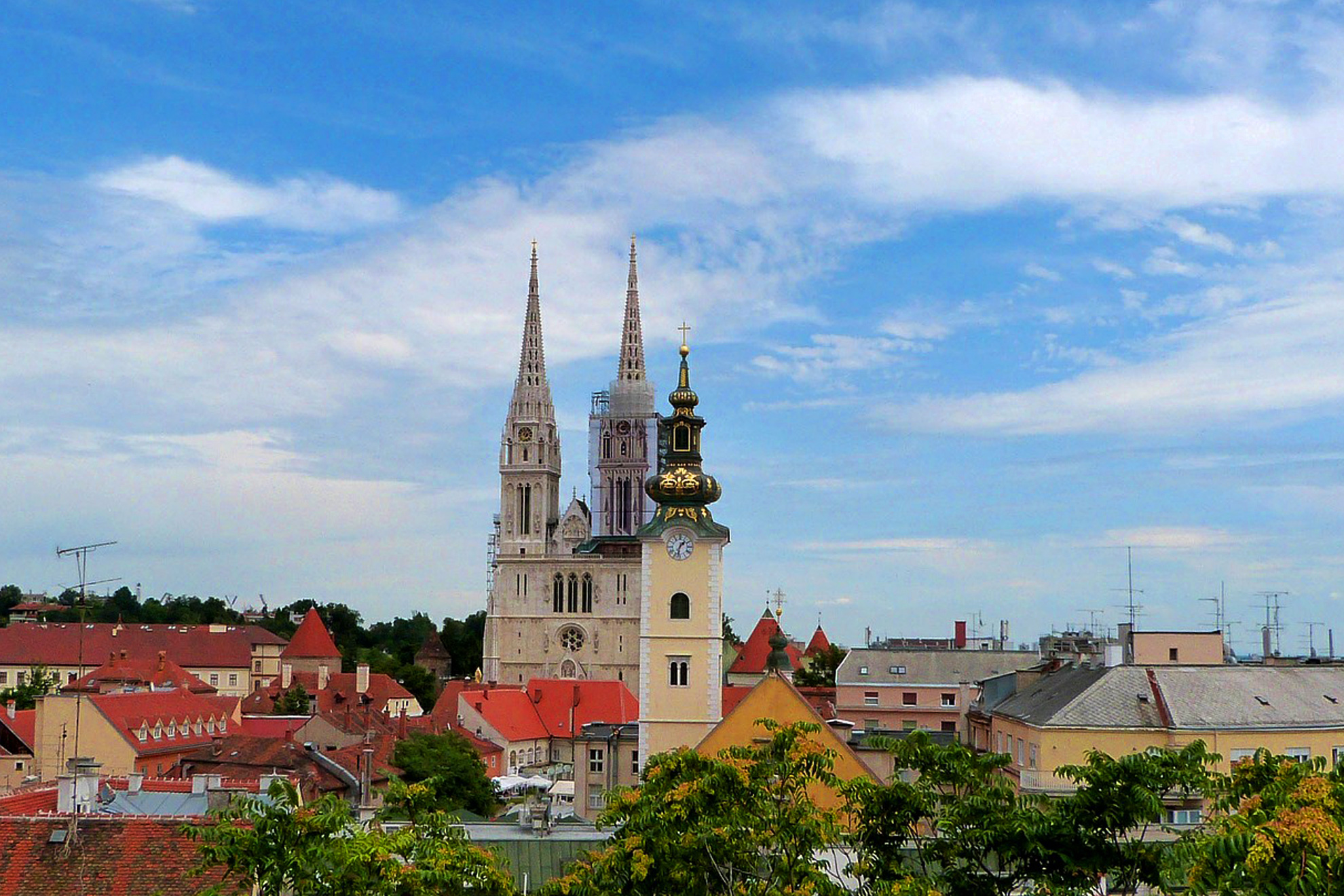 Любопитен факт е, че Загреб е построен с внимателно планирана архитектура, повлияна от двете средновековни селища Каптол и Градец. Днес центърът на хърватската столица се дели на Горни град и Долни град. Горни град е историческото сърце на Загреб, тук се намират средновековните квартали "Каптол" и "Градец" и някои от най-важните исторически забележителности. Църквата „Свети Марк” от XIII в. пленява със своя многоцветен керемиден покрив и внушителната готическа врата. На едноименния площад се намират още две емблематични сгради на Загреб – на Парламента и на Народното събрание. Катедралата е един от символите на Хърватия, кулите ѝ се виждат почти от цял Загреб. Построена e през XIII в., но силно земетресение през 1880 г. нанася сериозни щети и сградата е преустроена в неоготически стил. „Кървави мост” днес е улица, но в миналото тук е имало мост, който свързвал двете средновековни селища Каптол и Градец. През вековете мостът е бил сцена на не една и две кървави битки между двете градчета, от там идва и името му, а когато реката пресъхва, улицата, която остава взема името на съоръжението. По стръмна калдъръмена улица ще стигнем до Каменната порта, остатък от древни отбранителни структури, а днес част от Параклиса на Дева Мария. Тук икона на Божията майка и Младенеца оцелява по чудо при голям пожар, което превръща параклиса в религиозен център.