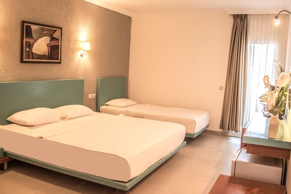 Хотелът посреща гостите си в 225 стаи, разположени в 29 къщички. Разполага със 189 стандартни и 34 фамилни стаи. В климатизираните стаи има телевизор с плосък екран и сателитна телевизия, телефон, минибар, сейф, баня с душ, сешоар, френски балкон.