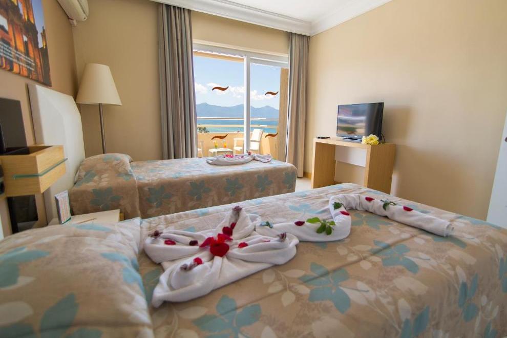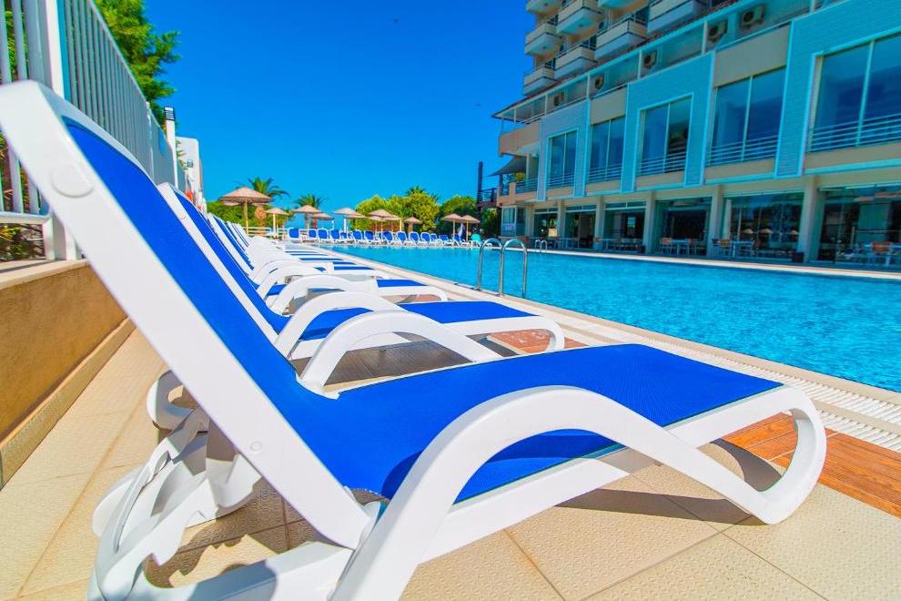 Хотелът разполага със собствен пясъчен плаж с дължина 110 метра. Има също 1 голям външен басейн (300 кв.м), 1 вътрешен басейн (70 кв.м) и 1 детски басейн (30 кв.м с дълбочина 40 см). На плажа и при басейна безплатно се предоставят се кърпи, шезлонги, чадъри и матраци.