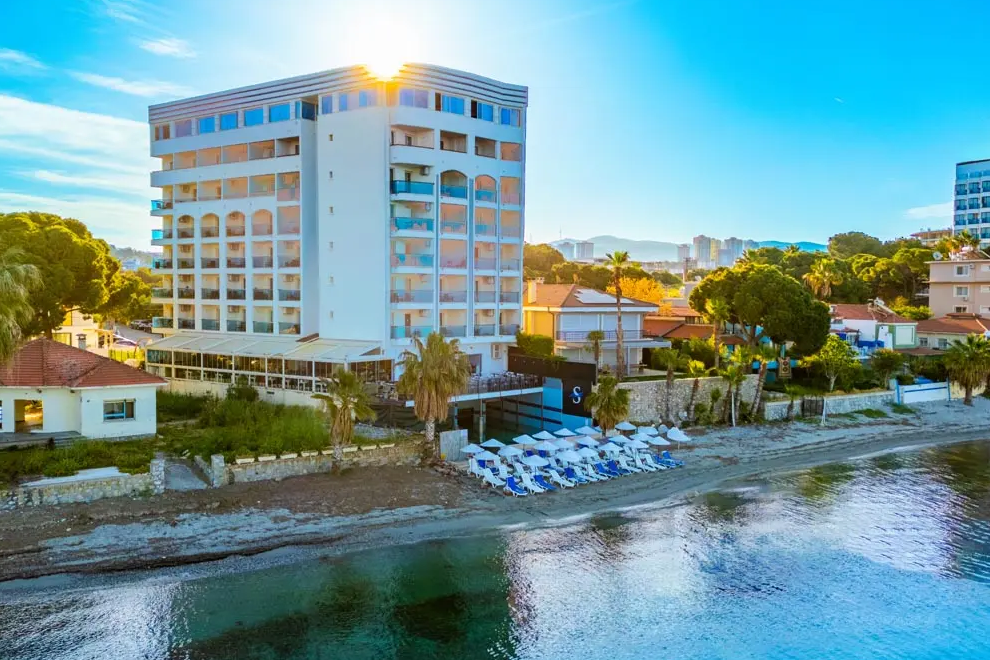 Хотелът се намира на 50 м от брега на морето, на 4 км от центъра на Кушадасъ и на 121 км от летище "Милас". Последно реновиран през 2018 г.