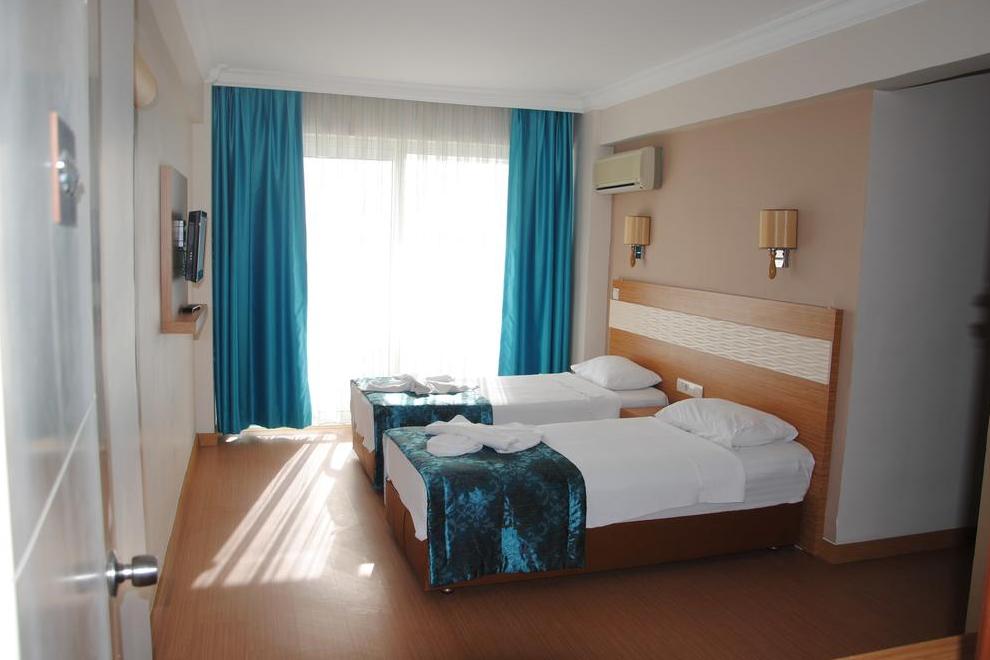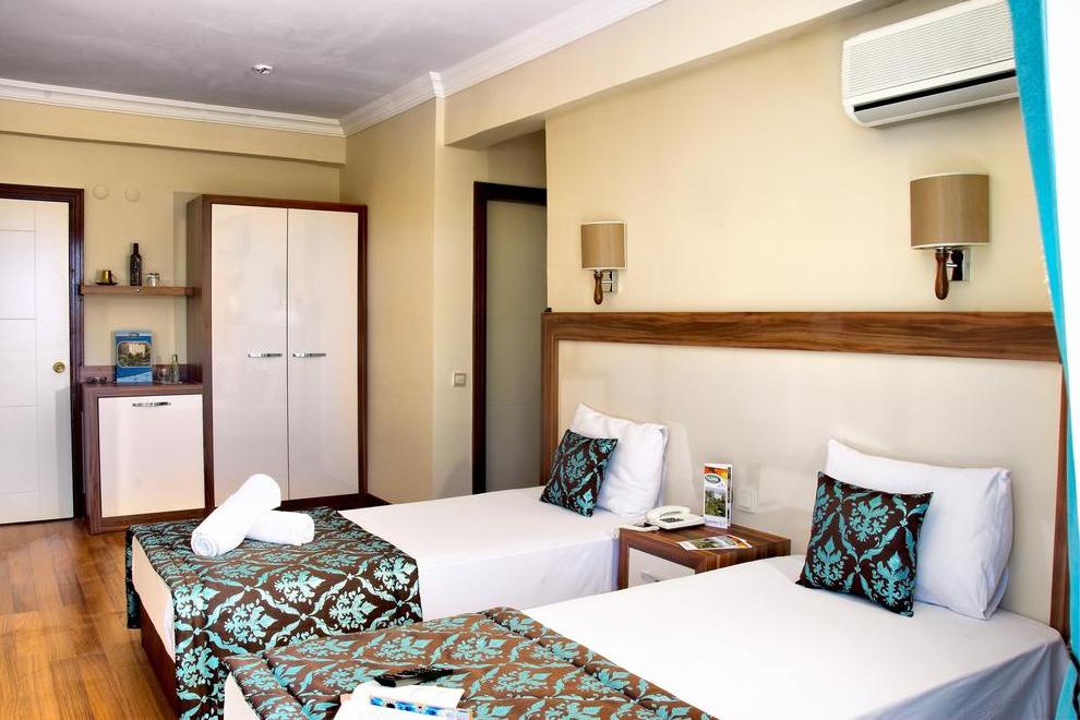 Хотелът посреща гостите си в 104 климатизирани стаи, разположени в един 5-етажен корпус. В стаите има телевизор, телефон, минибар (празен), баня с душ, сешоар, балкон. Фамилните стаи са оборудвани с кухненски приспособления, хладилник, фурна, маса за хранене със столове. Стаите се почистват всеки ден, спалното бельо се сменя 2 пъти седмично.