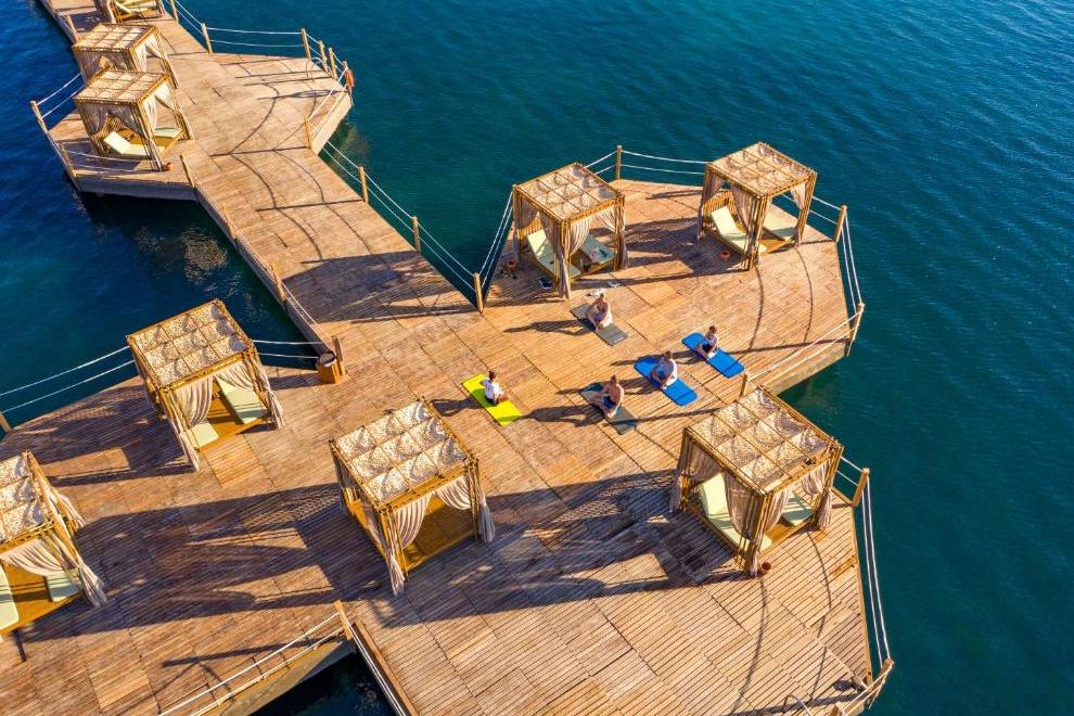 хотелът има собствен пясъчно-чакълест плаж с кей. На разположение на гостите е открит басейн , без подгряване.