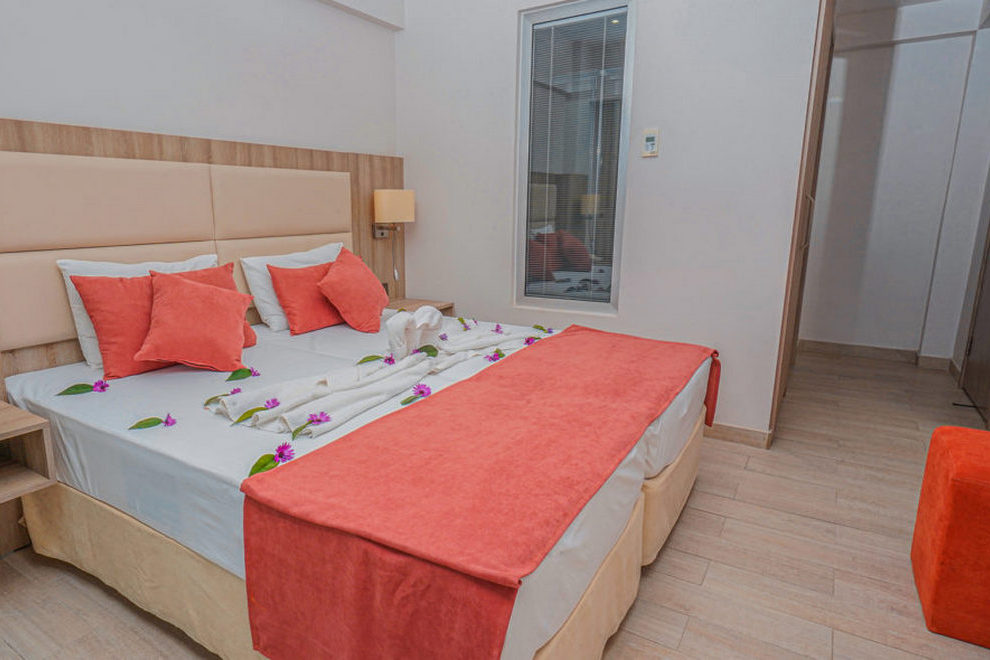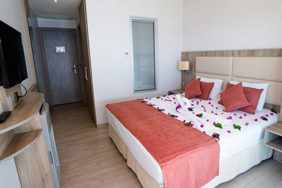 Хотелът се състои от една 6-етажна сграда (1 асансьор), в която са разпределени 60 климатизирани стаи: 5 Land View (20 кв.м), 35 Side Sea View (20 кв.м), 19 Front Sea View (20 кв.м). Те са оборудвани със сателитна телевизия, телефон, минибар (платено), сейф (платено), баня с душ, сешоар, тоалетни принадлежности, балкон, Wi-Fi . Стаите се почистват всеки ден, спалното бельо се сменя два пъти седмично.