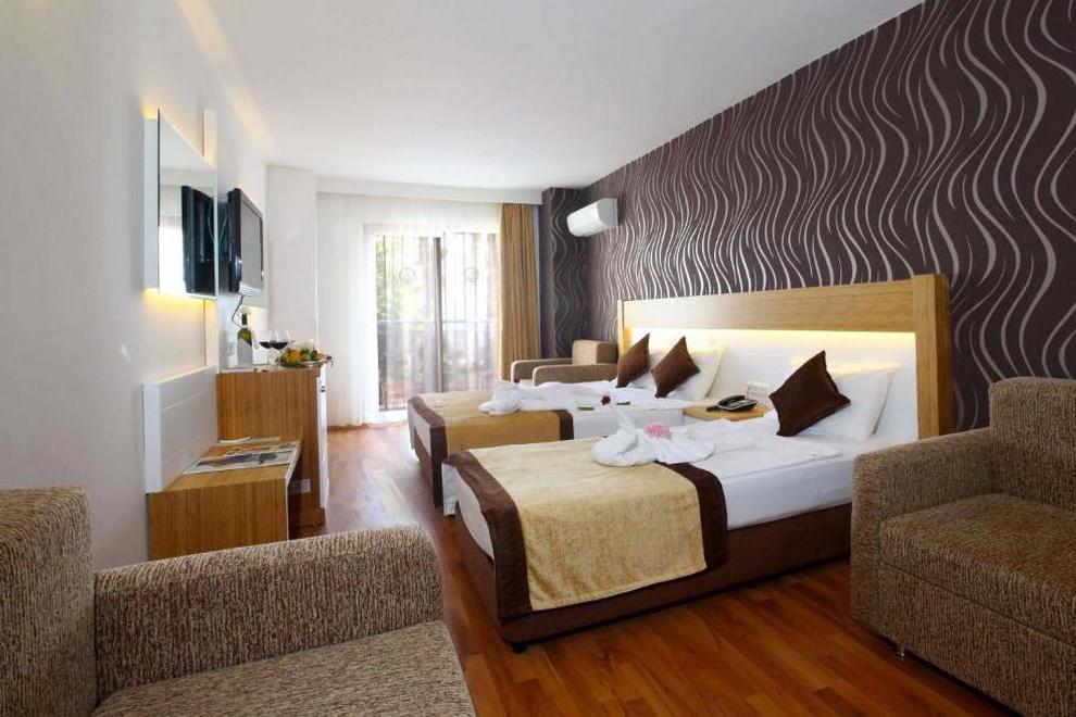 Хотелът разполага с 222 стаи и 526 легла. Стаите предлагат перфектна възможност за почивка със своята просторна и широка структура с гледка към море, басейн, градина и планина. В климатизираните стаи с кабелна телевизия има минибар, самостоятелна баня със сешоар и тоалетни принадлежности.