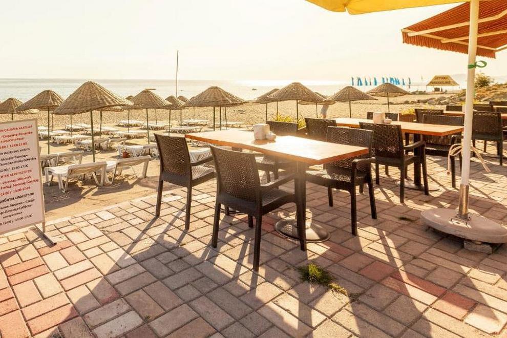 Собствен пясъчно-чакълест плаж. Има и два басейна. Чадъри и шезлонги на плажа и при басейна се ползват безплатно.