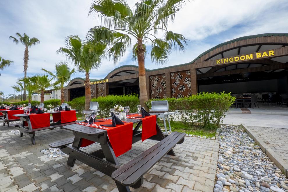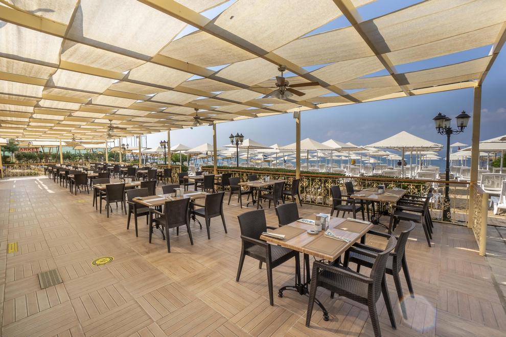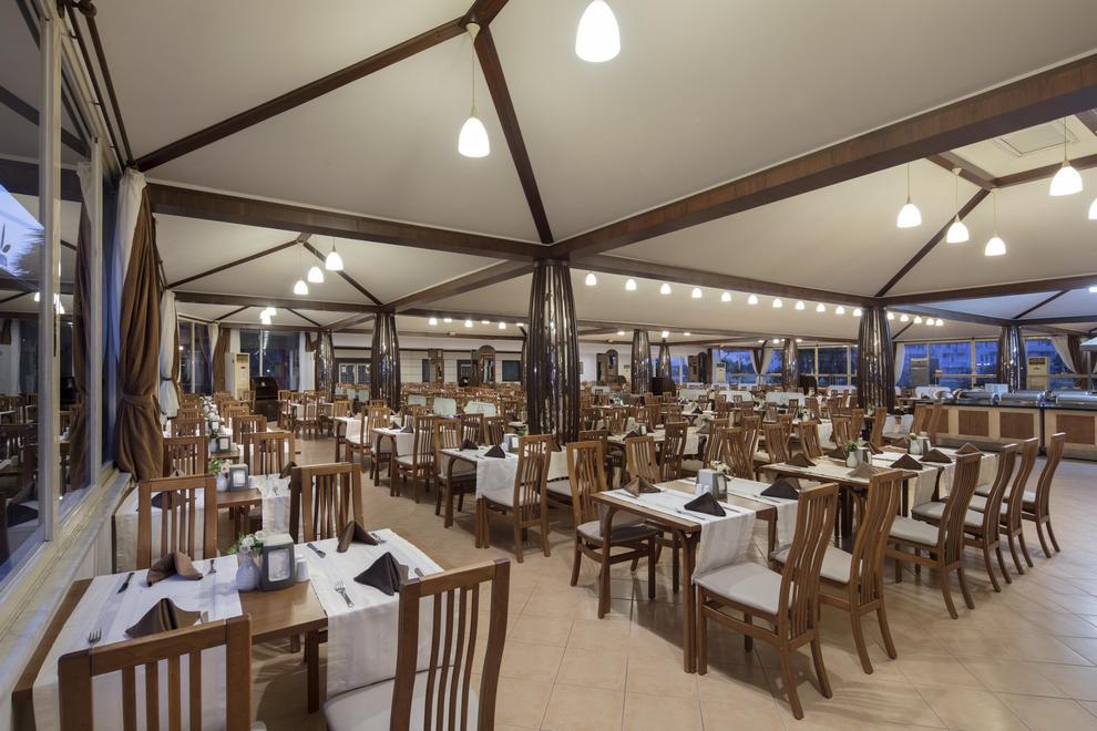 Основен ресторант, открита и закрита част - Ultra All Inclusive/ закуска, обяд и вечеря, междинни хранения, местни безалкохолни и алкохолни напитки без лимит, 2 а`ла карт ресторанта (турски и рибен) – с предварителна резервация, 4 бара - лоби бар, бар около басейна, плажен бар и диско бар.