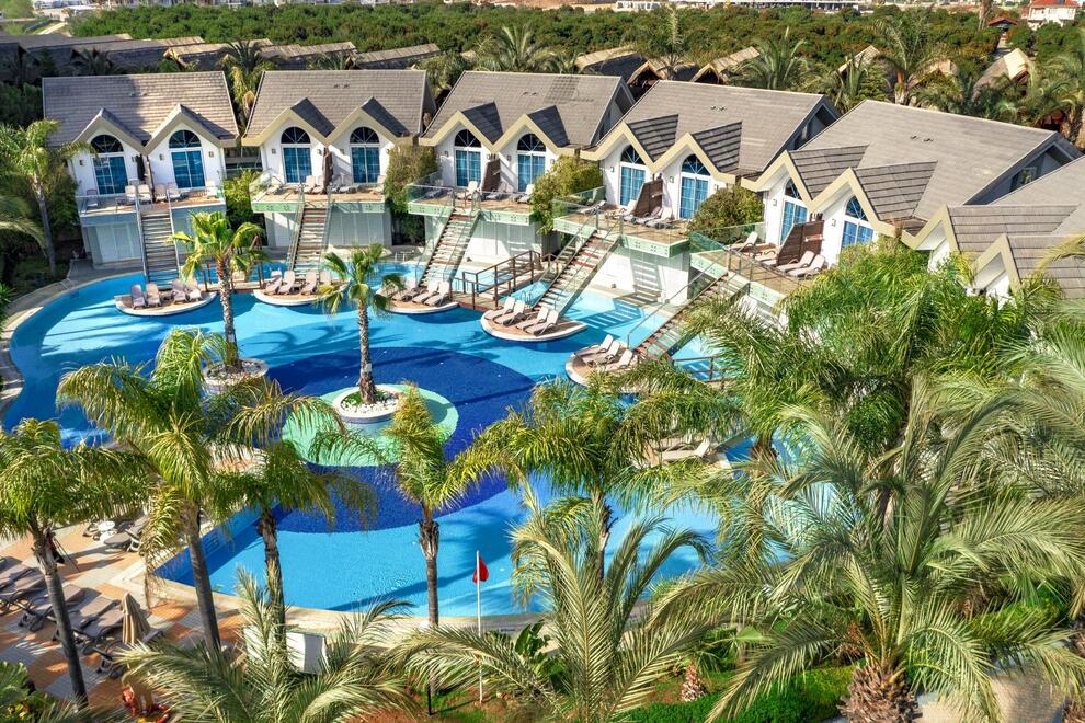 Хотелът се намира на 90 км от летище Анталия, на 20 км от центъра на Алания, на брега на морето. Построен е през 2006 г. с обща площ от 75.000 кв.м.