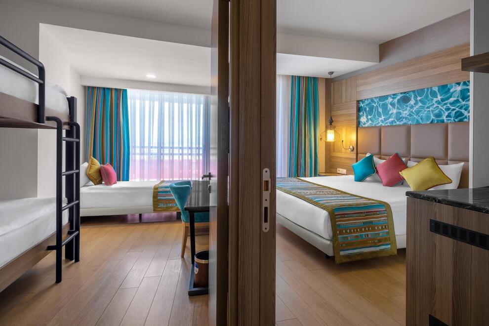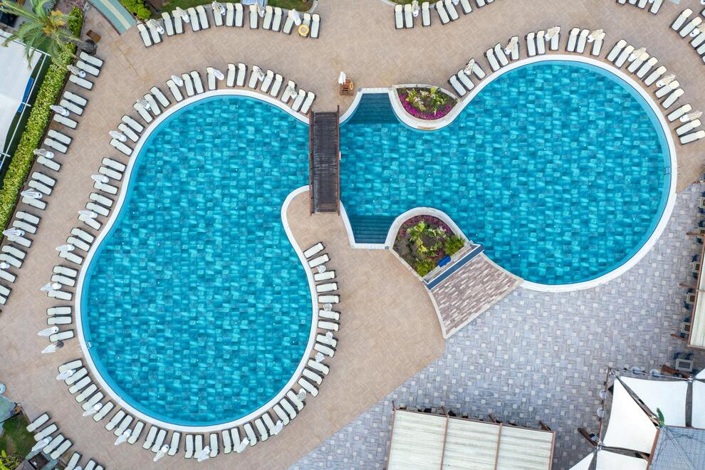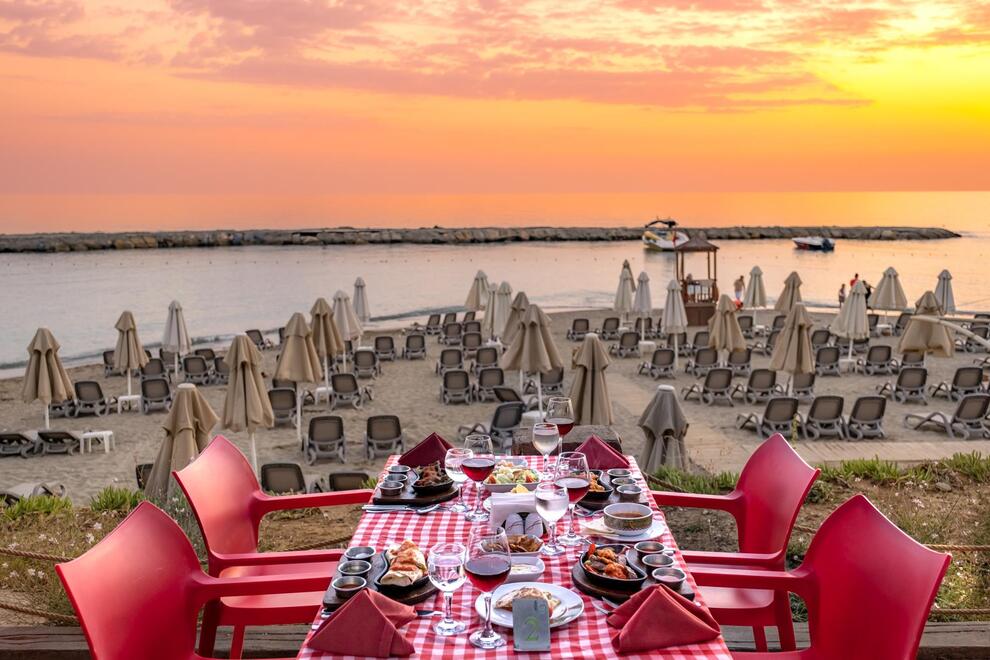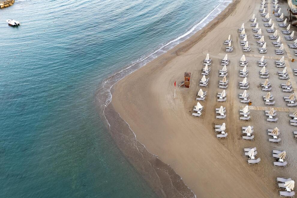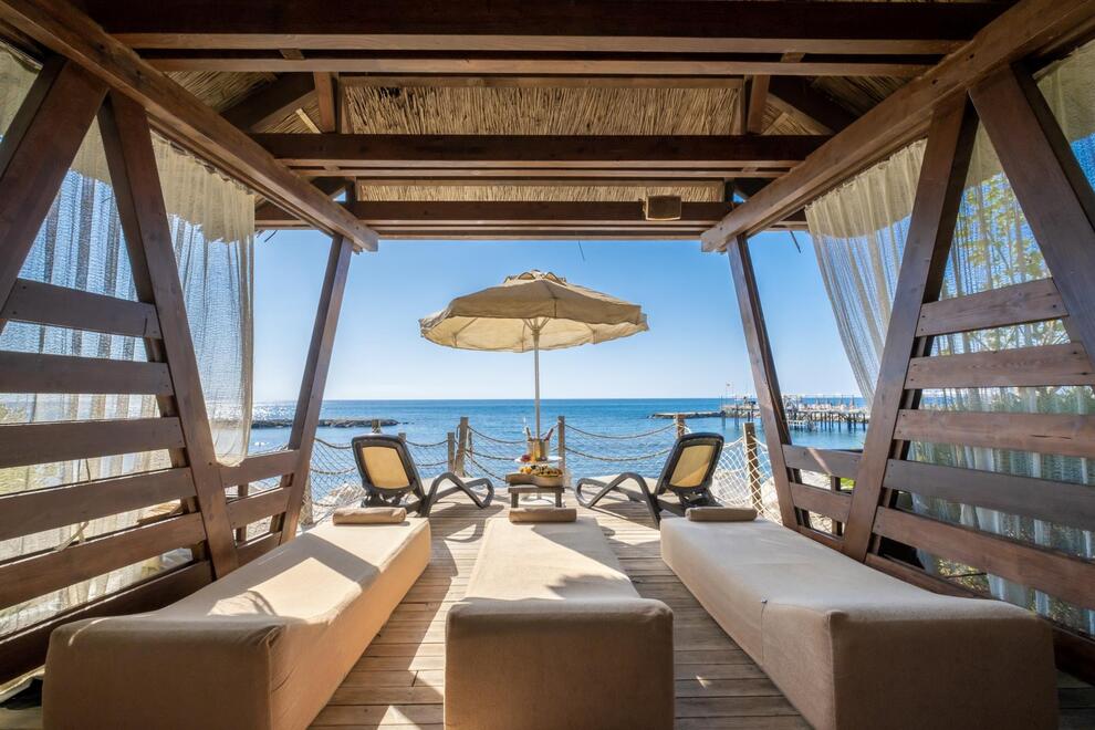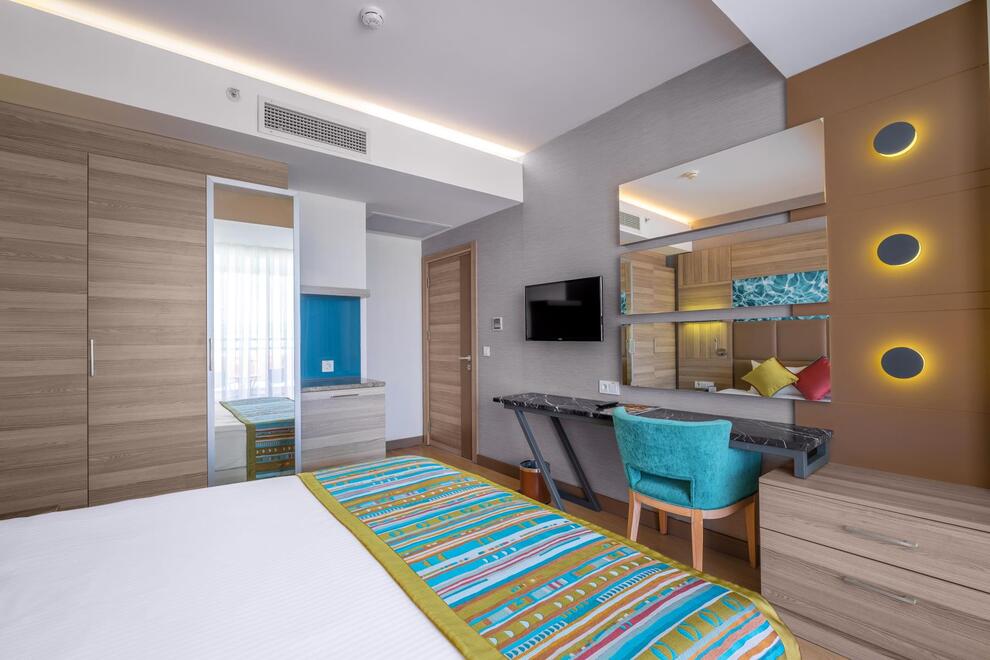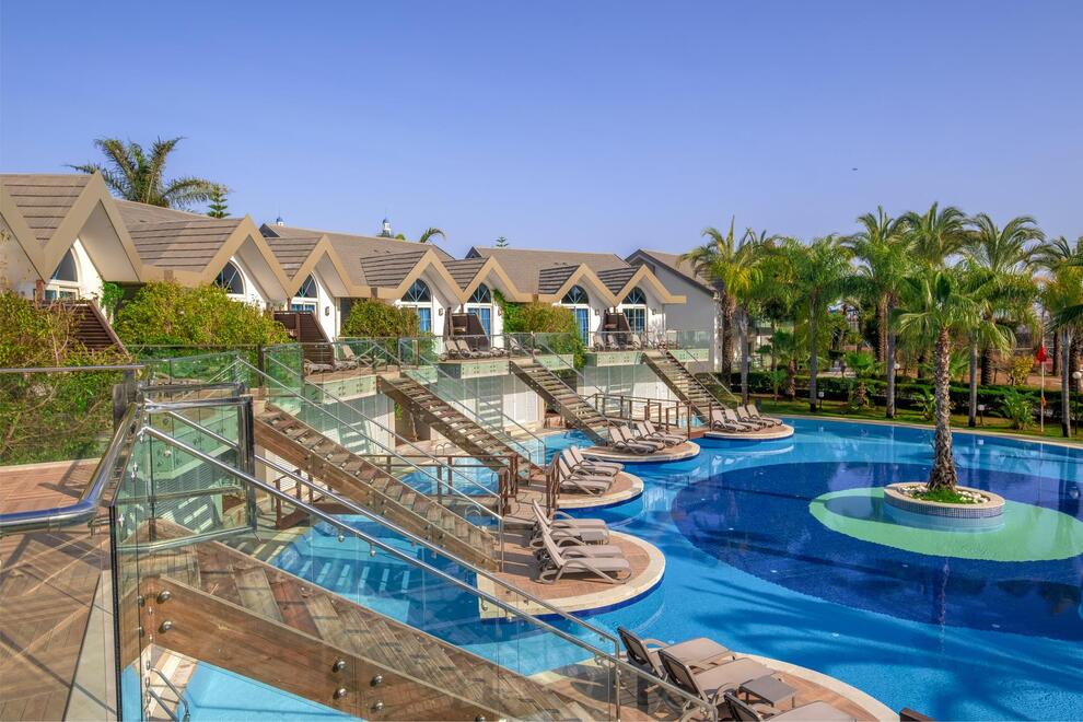 Хотелът разполага със собствен пясъчен плаж с кей. Има 6 открити и 1 закрит басейн, 8 водни пързалки. Чадъри, шезлонги и матраци на плажа и при басейна – безплатно. Плажни кърпи - срещу карта, която се издава при настаняване.