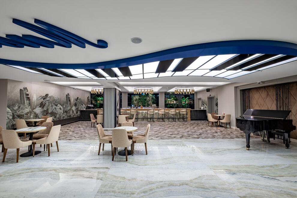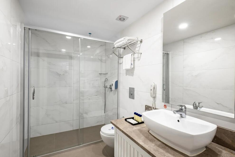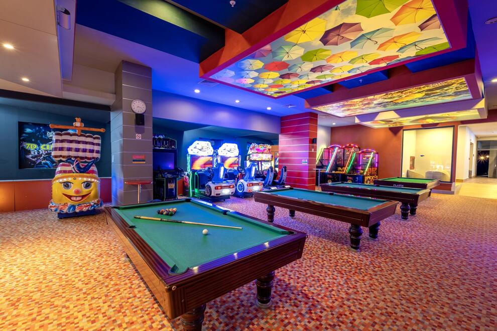 Хотелът има амфитеатър, магазини, СПА център, 4 конферентни зали, паркинг. Възможност за активен отдих или релакс с турска баня, парна баня, сауна, джакузи, фитнес, аеробика, водна гимнастика, дартс, тенис на маса, 3 тенис корта, баскетбол, плажен волейбол, мини футбол, анимация, интернет (на лоби бар), ТВ - салон, домашен кинотеатър, библиотека. Срещу заплащане - масаж, солариум, билярд, боулинг, козметичен салон, търговски център, водни спортове, интернет кафе, лекарски кабинет (6 часа на ден ), фризьорски салон. За децата има 3 детски басейна, водни пързалки, детска площадка, мини клуб (4–12 г.), аквапарк, детегледачка (срещу заплащане).