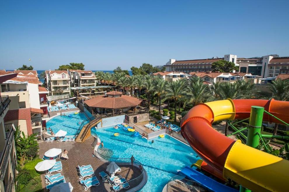 Разположен на 54 км от летището на Анталия, в Кемер, на брега на морето. Построен е през 2004 година, общата площ на хотела е 29 000 кв.м., Последно е реновиран през 2022 година.