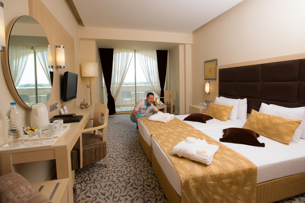 Хотелът се състои от едно 7-етажно здание, като 45% от стаите са с гледка море. Предлага настаняване в 244 климатизирани стаи: 133 Superior Garden View (28 кв.м) и 110 Superior Sea View (28 кв.м). Те са оборудвани с телефон, телевизор, минибар, сет за кафе/чай, сейф, баня с душ, сешоар, халат и чехли, балкон, WI-FI. Ежедневно почистване на стаите, спалното бельо се сменя през ден.