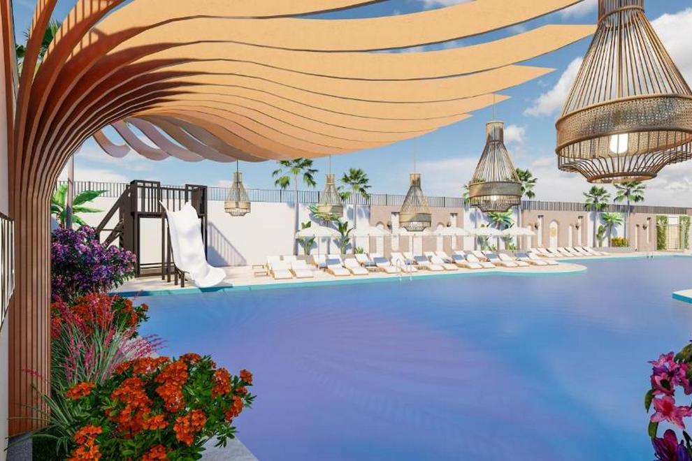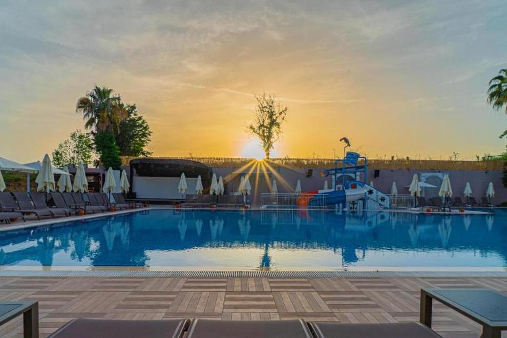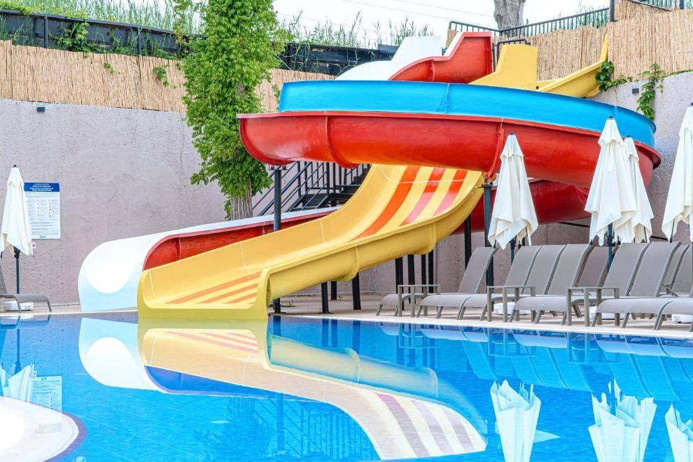 Собствен пясъчен плаж на 550 м от хотела. Открит басейн за възрастни: 500 кв.м, детски басейн 55 кв.м и две водни пързалки - по една за възрастни и деца.