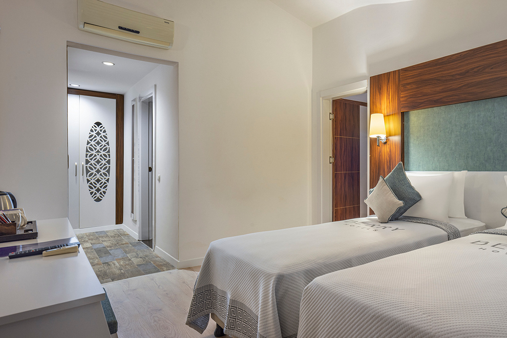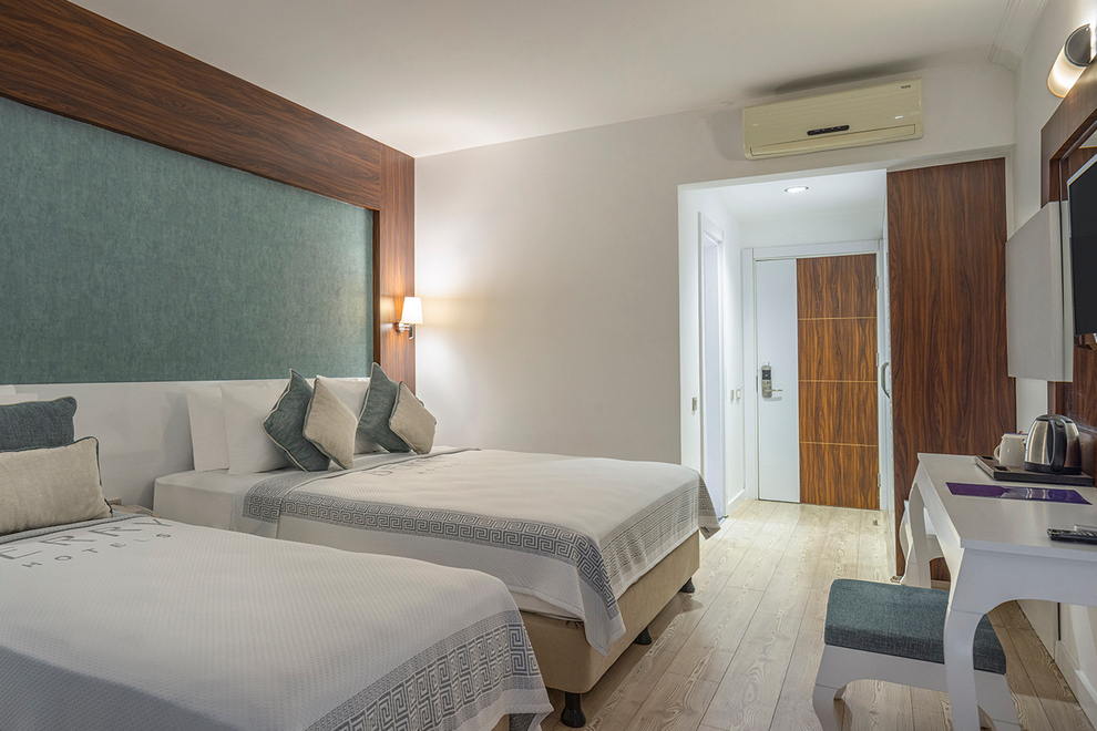Хотелът посреща гостите си в 266 климатизиранистаи, разположени в 5-етажна основна сграда Main building, от които Elite Room (23 кв.м), Elite Family room (2 спални, 1 баня - 43 кв.м), Disabled Room (стаи за инвалиди -23 кв.м). Всички стаи са оборудвани с телевизор, телефон, сет за чай/кафе, минибар (безплатен), сейф (безплатен), баня с душ, сешоар, чехли, балкон. Почистване на стаите и смяна на кърпите – всеки ден, смяна на спалното бельо – 3 пъти в седмицата.