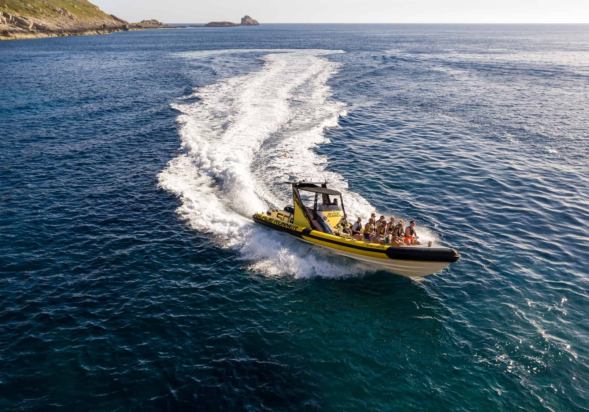 Това не е просто разходка с лодка. С ускорение, което се помни дълго след това, Bladerunner ни отвежда към едни от най-красивите и недостъпни места по бреговете на Майорка - диви скални образувания, тайни морски пещери и спиращи дъха заливи. А когато лодката намали ход, пред нас се разкрива магията на Средиземно море. Една от емблематичните спирки е спокойният и красив залив Porto Vells - малък рай, където природата е оставила най-чистото си синьо. Тук можем да се потопим с предоставената екипировка за гмуркане, да разгледаме пещерите отвътре, да пробваме падъл борд или дори да се плъзнем под водата с подводните скутери. За музиката, свежите напитки и енергията на екипажа не се тревожим - те са част от преживяването. Така, между високия адреналин и спокойните моменти на плуване, усещаме и духа на Майорка – суров, красив и истински. Два часа по-късно се връщаме на брега с коси, разрошени от вятъра, сол по кожата и огромни усмивки. Това е Bladerunner – емоция, която си заслужава всеки миг.