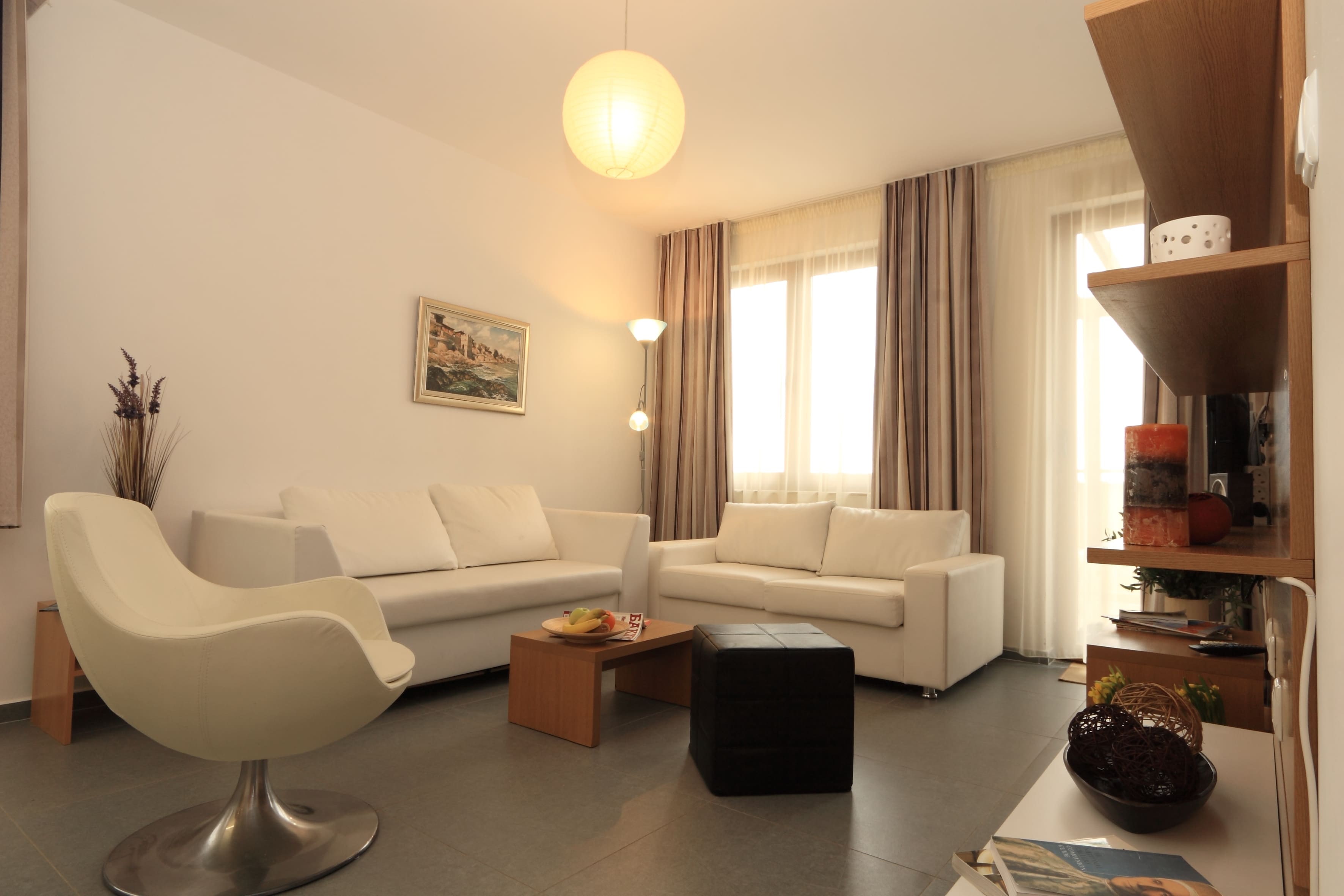 Всеки един апартамент е елегантно обзаведен, разполага с оборудвана кухня, безплатен wi-fi интернет и разбира се балкон, където ще се насладите на морския бриз. Апарт хотелите ни са заобграден от красиви градини с освежаващи басейни – за вашият пълен релакс.
