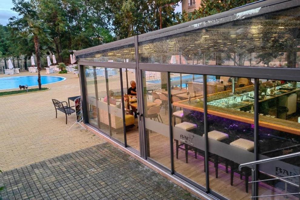 Основният ресторант има зала със 150 места и закрита тераса със 150 места. На разположение на гостите ма още лоби бар и бар басейн.