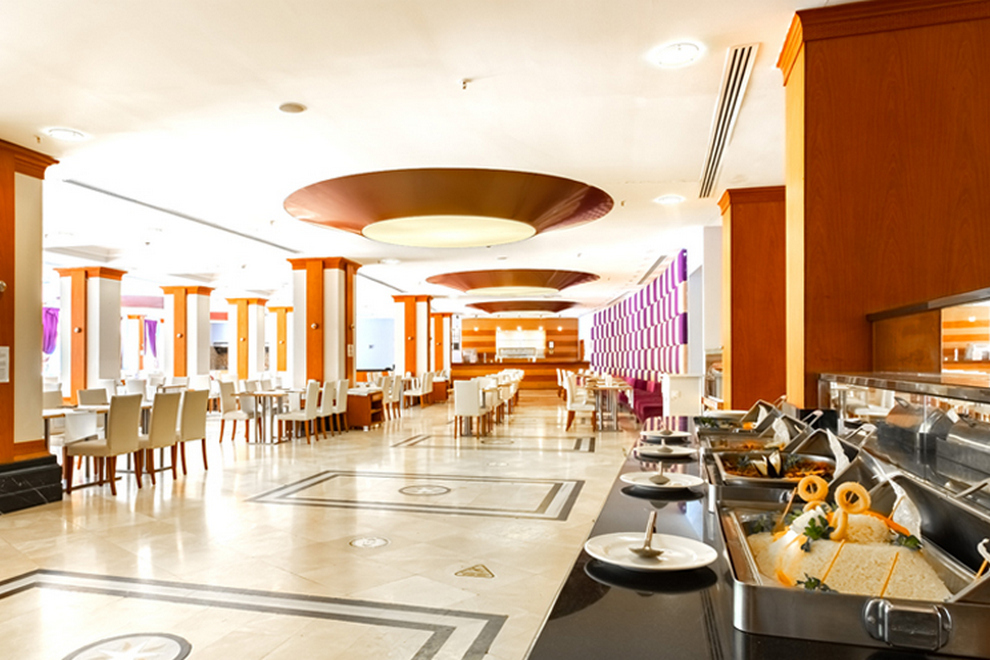 На разположение на гостите са 2 ресторанта - основен и а'ла карт ресторант. Освежаващи напитки и закуски се поднасят в 5 бара - Снек бар на басейна, Кафе бар, Лоби Аквариум бар, Английски бар, Витаминен бар.