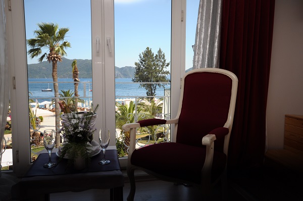 Описание Местоположение Dora Beach Hotel е разположен на 90 км от летище "Даламан", на 2 км от центъра на Мармарис, на брега на Егейско море. Реновиран е през 2011 г. Настаняване Dora Beach Hotel разполага общо с 60 стаи за гости, разположени в един корпус. 20 от стаите са декорирани в лилаво - специално за незабравим меден месец. 8 от стаите са романтично обзаведени в червено или лилаво, с джакузи и с директна гледка към морето. Всички стаи са оборудвани с централен климатик, мини бар, сателитна TV, електрическа кана, кафе и чай, телефон, баня с душ, сешоар, сейф, балкон. Стаите се почистват всеки ден, спалното бельо се сменя три пъти седмично. Храна и напитки Dora Beach Hotel разполага с 1 основен ресторант с открита и закрита секции и 1 а'ла карт ресторант, предлагащ индийска кухня, 2 бара - на лоби и бар на плажа. Удобства, спорт и забавления Dora Beach Hotel предлага възможност за практикуването на водни спортове, тенис на маса, билярд, дартс. Wi-Fi интернет е наличен в публичните зони на хотела без допълнително заплащане. Плаж Dora Beach Hotel се намира на собствен плаж. Разполага с 1 открит плувен басейн със секция за деца. Чадъри и шезлонги на басейна и на плажа - безплатно.