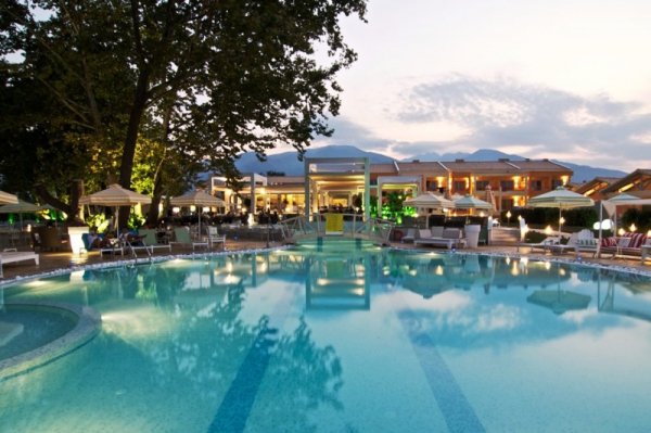 Описание Разположение: хотелът се намира в района Плака на Олимпийската Ривиера, на 2 км от Литохоро и на 32 км от Паралия Катерини. В хотела: хотелът се състои от няколко ниски сгради с общо 31 помещения - двойни стаи стандарт, апартаменти Джуниор Суит и вили. Хотелът предлага на своите гости основен ресторант, ресторант гурме, основен бар, бар на басейна, бар на плажа, безжичен интернет. Стаи: стаите са оборудвани с климатик, телефон, сателитна телевизия, безплатен интернет, мини бар, балкон, сейф, баня, с душ (в някои има и джакузи). Вип вилите разполагат с частен басейн, джакузи и камина. Спорт и развлечения: детска площадка, един открит басейн, два закрити отопляеми басейна, Спа център - масажи, сауна, турска баня, хамам. Плаж: плажът е пясъчно-чакълест, на 50 м от хотела. Шезлонгите и чадърите на плажа са безплатни.
