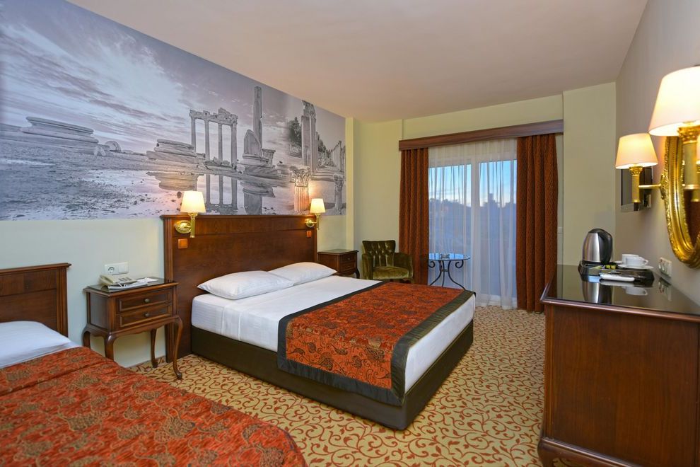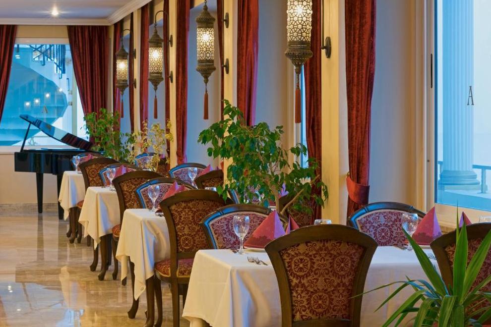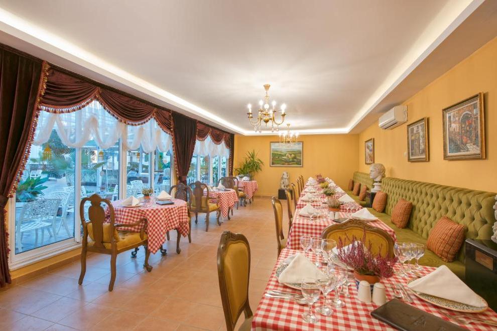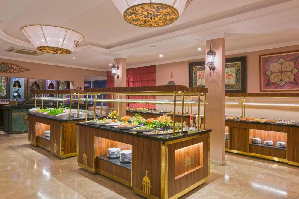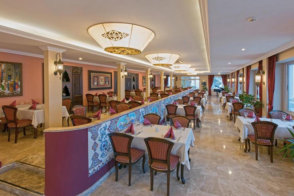 All Inclusive ресторантът на Antique е в отомански стил и предлага турски и международни ястия, приготвени със сезонни продукти. Гостите могат да поръчат коктейли на терасата или в бара до басейна.