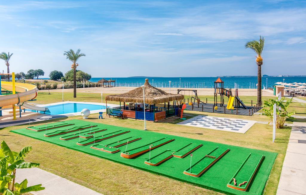 Комплексът предлага удобството на СПА център с турска баня, сауна. Възможност за активен отдих със занимания във фитнес центъра, тенис корт, тенис на маса, мини клуб, дартс, плажен волейбол, мини голф, водни спортове, зала за видеоигри. Гостите на Beach Resort могат да се отпуснат върху шезлонгите в градината или да релаксират в закрития басейн с водни пързалки. До детската площадка има тенис корт и игрище за мини голф. Районът предоставя възможности за гмуркане с акваланг и разходки с лодка.