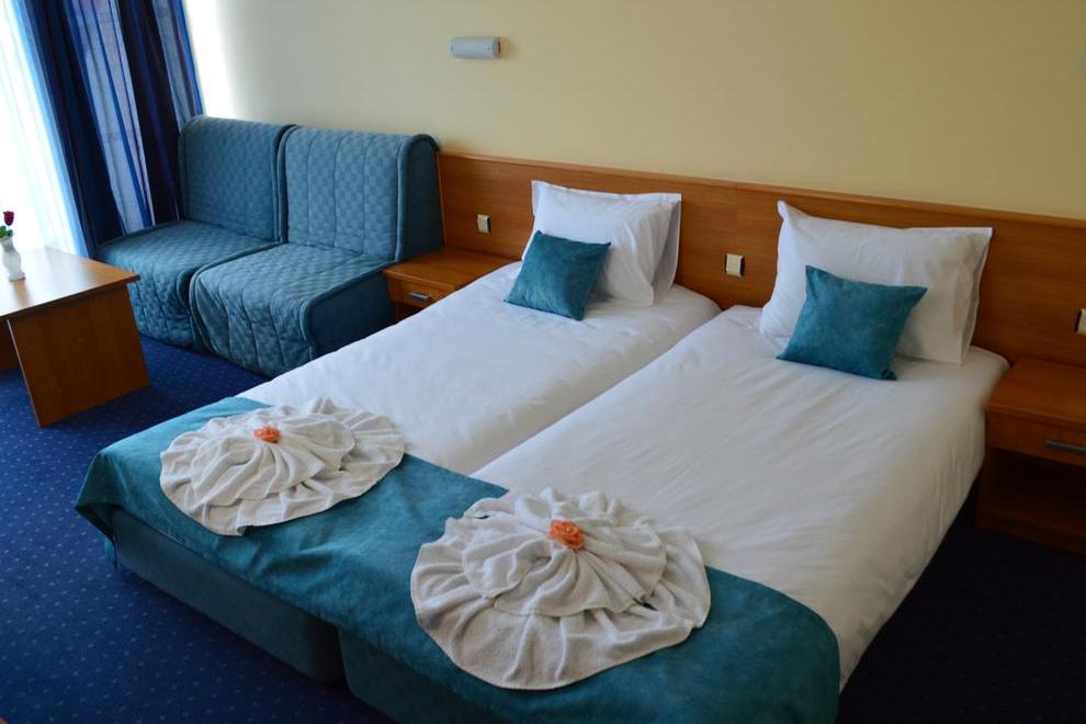 Всички стаи в хотел Аквамарин разполагат с 2 стандартни легла, фотьойл, телефон, телевизор със сателитна телевизия, климатик, мини хладилник, баня с вана, душ и сешоар. Повечето стаи имат възможност за 1 или 2 допълнителни легла (тип разтегателен диван).