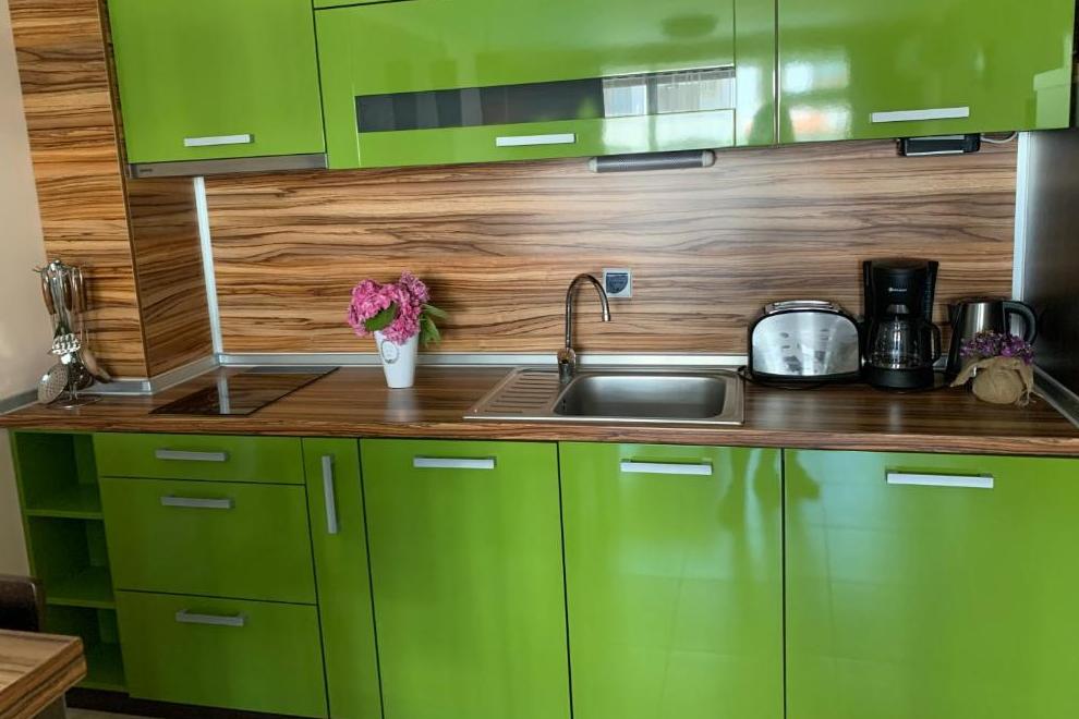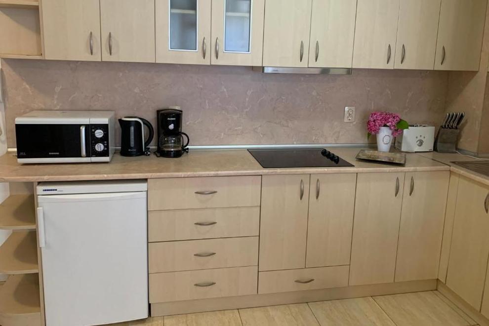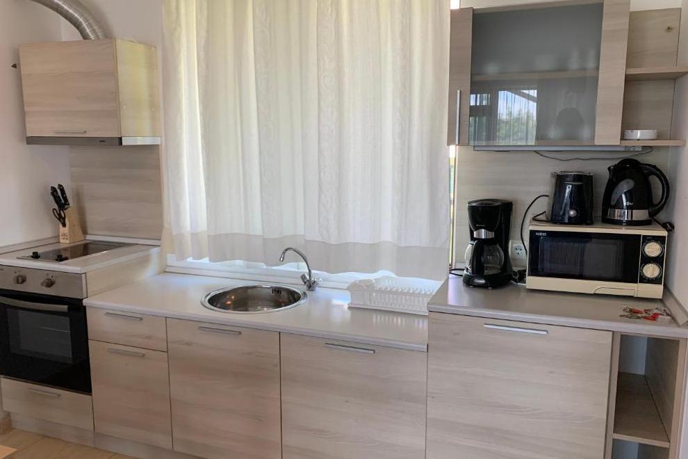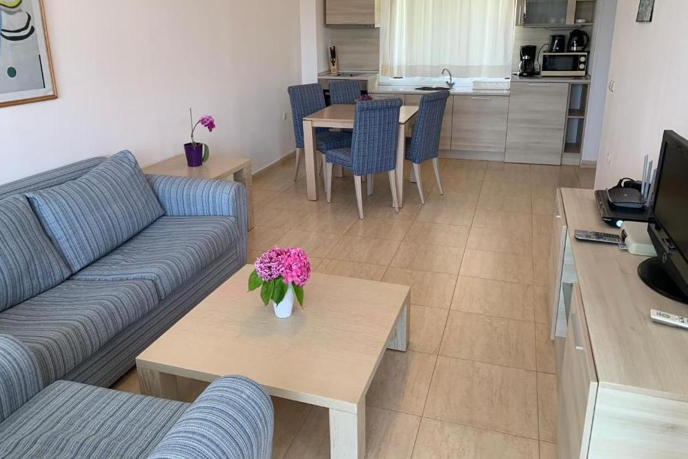Апартаментите са с размери до 150 кв.м и предлагат гледка към морето, градината или басейна. Разполагат с оборудван кухненски кът във всекидневната с шкафчета и мивка, хладилник, печка с фурна и котлон, аспиратор, тостер, кафе машина, термо кана, посуда. В стаите има телевизор, гардероб, тоалетка, климатик. Холът е обзаведен с диван, който се разтяга, малка масичка. Самостоятелна баня с душ кабина. В допълнение има ютия и дъска за гладене, сушилник.