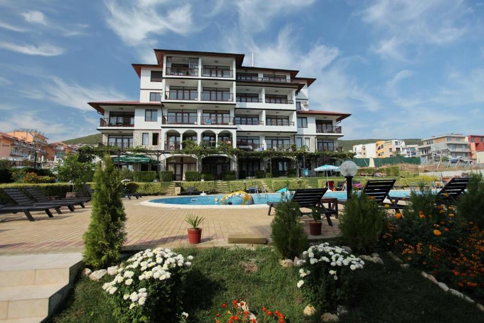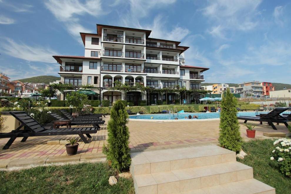 Апартаментен комплекс "Бадемите" се състои от две сгради, на 4 етажа, с басейн между тях. Намира се само на 20 м от плажа и на пешеходно разстяоние от Свети Влас с неговите магазини, ресторанти и барове.