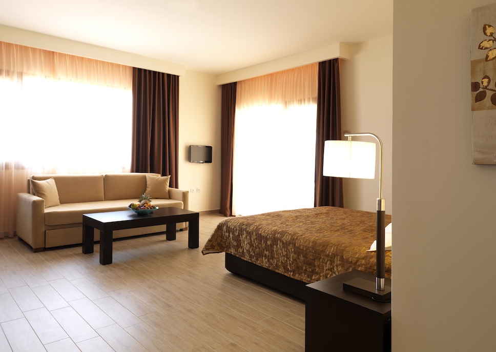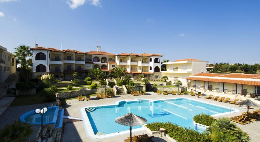 Описание Местоположение: Blue Bay Hotel се намира на 72 км от летище Македония, в селището Афитос на ръкава Касандра в Халкидики, разположен на хълм на 60 м от брега на морето. Настаняване: Blue Bay Hotel разполага с общо 59 стаи за гости, оборудвани с климатик, сателитна телевизия, мини хладилник, директен телефон, баня с душ или вана, сешоар, сейф, балкон с изглед към морето. Фамилните стаи имат кът за сядане. Храна и напитки: Blue Bay Hotel разполага с един основен ресторант, А'ла карт ресторант, лоби бар, снек бар при басейна. Удобства и забавления: Blue Bay Hotel предлага възможност за отдих и забавления на два открити плувни басейна за възрастни и един за деца, SPA център (турска баня, джакузи, масаж), фитнес зала, детска площадка. Предлага практикуването на водни спортове, плажен волейбол. Wi-Fi интернет е наличен в публичните зони на хотела без допълнително заплащане. Хотелът разполага с безплатен частен паркинг. Плаж: Blue Bay Hotel се намира на 60 м от пясъчния плаж. До плажа се стига по каменни стълби. Чадъри и шезлонги на басейна - безплатно, на плажа - срещу допълнително заплащане.