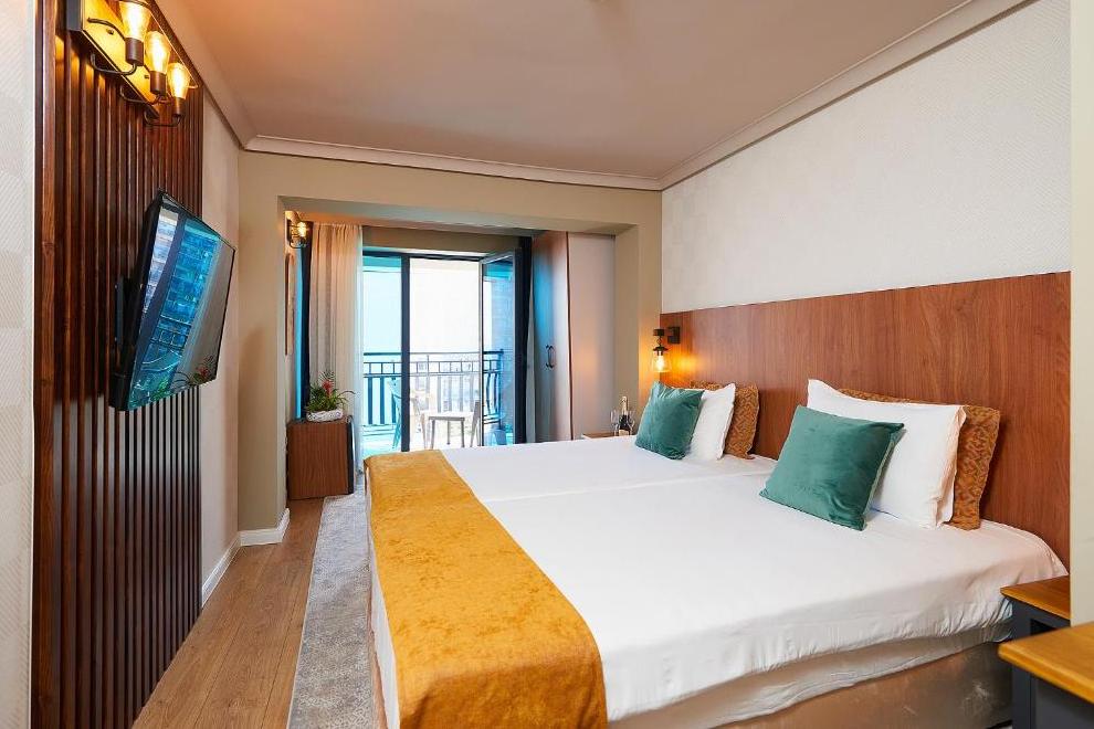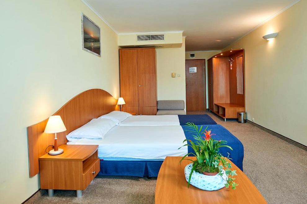 Хотелът се състои от една 12-етажна сграда (4 асансьора), в която са разпределени 248 двойни стаи, 16 фамилни стаи със свързваща врата и 6 апартамента. Всички стаи са климатизирани и разполагат с телефон, телевизор, минибар, самостоятелна баня с душ кабина, сешоар и разполагат с директен или страничен морски изглед към залива на Слънчев бряг и Несебър.
