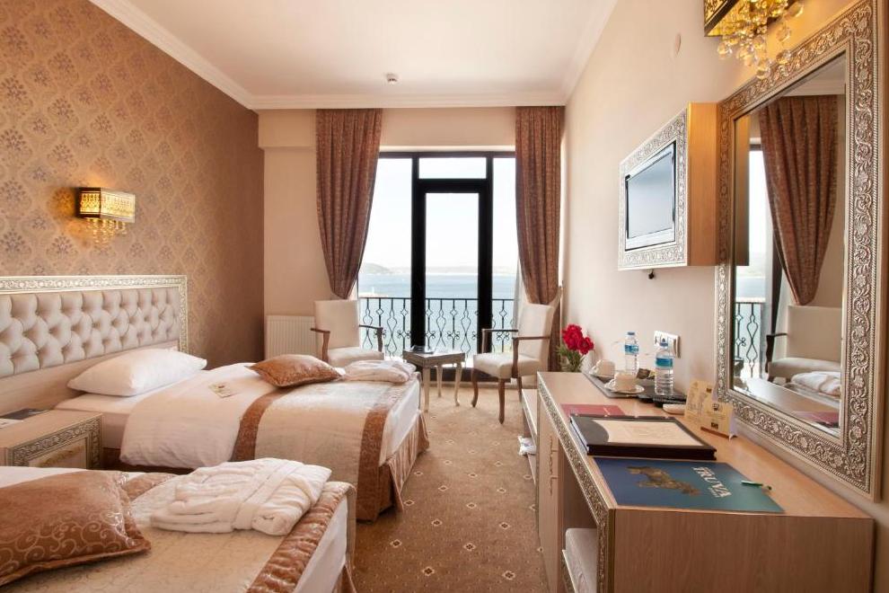 Хотел Buyuk Truva разполага с 66 двойни стаи, 61 стандартни стаи, 2 стаи за инвалиди и 3 апартамента. Всички стаи притежават гледка към морето или градината. Оборудвани са с отделна баня, директен телефон, сешоар, противопожарна аларма, room service, услуга за събуждане, телевизор, сателит, Wi-Fi климатична инсталация (топло и студено).