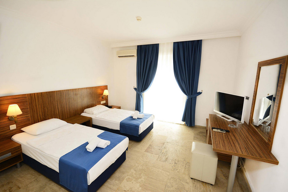 Хотелът се състои от 4 3-етажни сгради и посреща гостите си в 80 стаи, от които 70 стандартни и 10 фамилни. В климатизираните стаи има телевизор, телефон, минибар, сейф (платен), балкон или тераса. В банята има душ, сешоар, сапун, шампоан, душ гел. Почистване на стаите ежедневно, спалното бельо се сменя три пъти седмично.