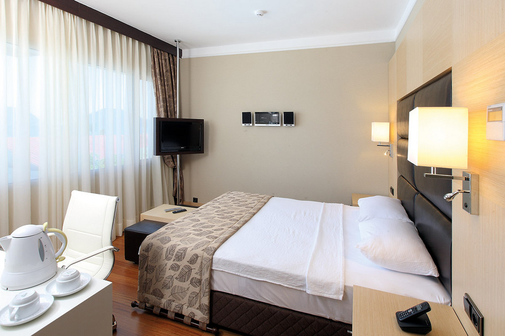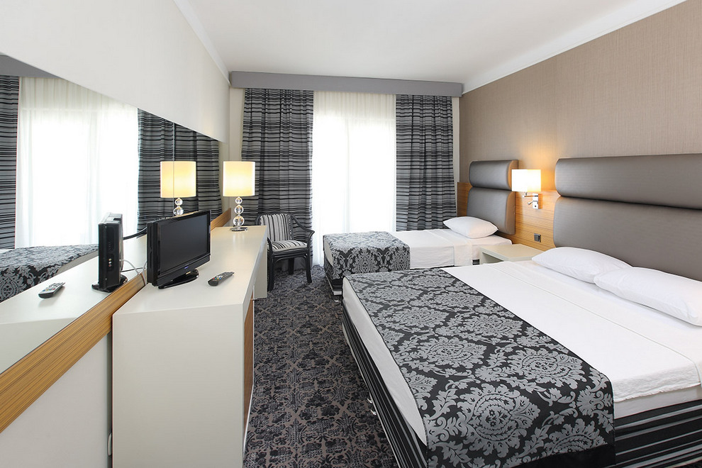 Хотелът посреща гостите си в 81 стандартни стаи, повечето с изглед към морето (25 кв.м, макс. 3 човека) и 4 мини апартаменти (26 кв.м, една по-голяма стая, макс. 4 човека). Стаите имат централен климатик, телефон, телевизор, минибар (срещу заплащане ), room service 24 часа, сейф (срещу заплащане), просторна и модерно оборудвана баня с душ/вана, сешоар, балкон. Стаите се почистват всеки ден. Смяна на спалното бельо и хавлиите - три пъти седмично. Безплатна Wi-Fi връзка