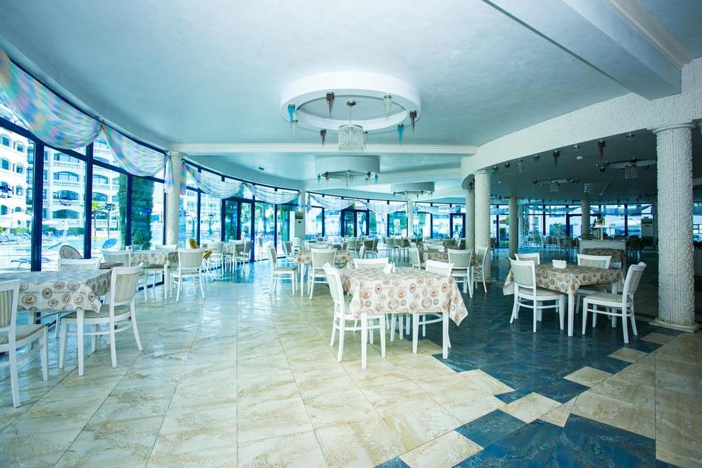 Хотелът разполага с основен ресторант, средиземноморски а`ла карт ресторант, лоби бар, пул бар, ирландски бар и бар, разположен на главната улица. Основният ресторант е с капацитет 300 места и предлага българска и интернационална кухня. Работно време: Закуска: 7.30 – 10.00 ч, Обяд: 12.30 – 14.30 ч, Вечеря: 18.00 – 21.00 ч.