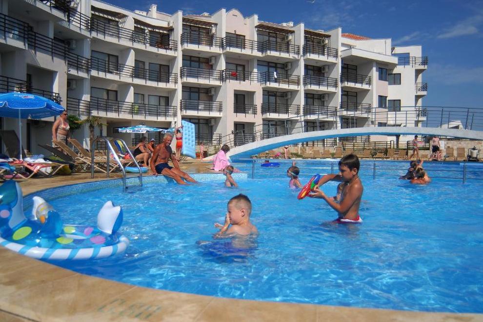 Разстоянието до двата плажа е 150-200 м. Два открити басейна, единият от които е с детска част.