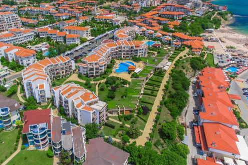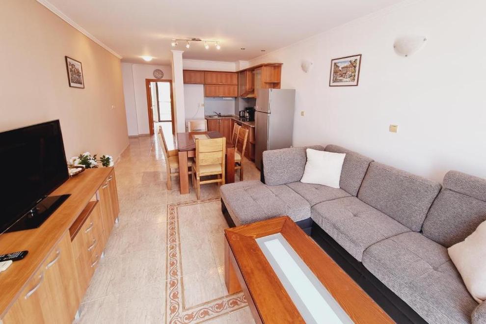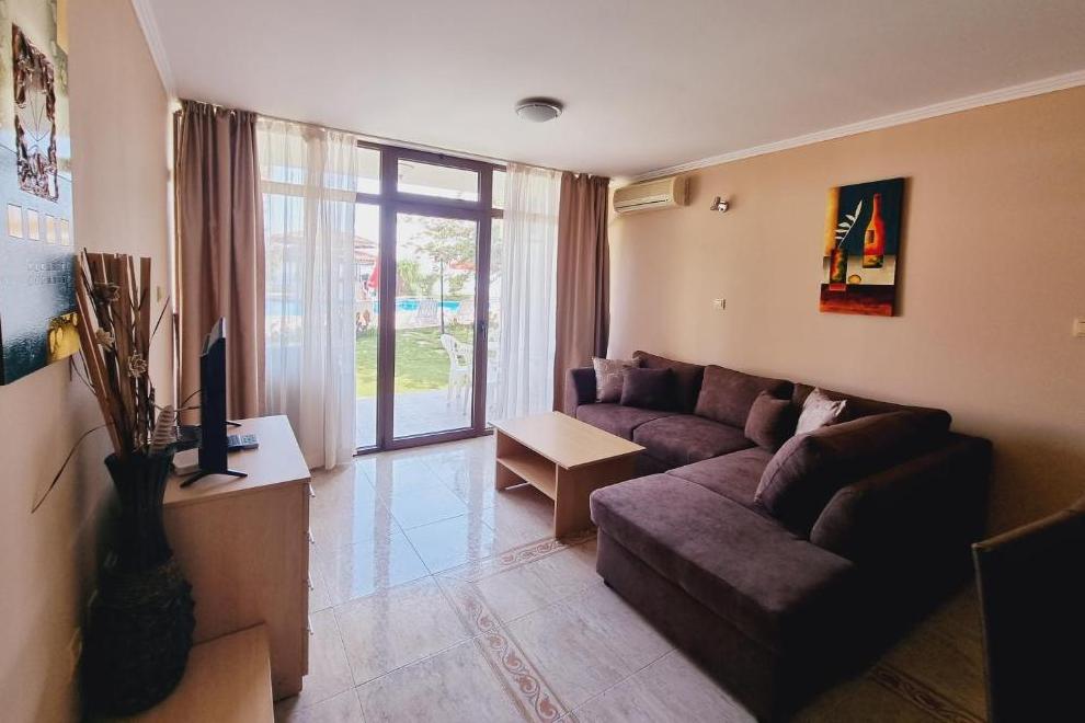 Всички просторни апартаменти се намират между партерен етаж, излизащ на трева, и 4-ти етаж, без асансьор. Спалните в апартаментите имат две единични легла или спалня, двукрилен гардероб със закачалки, тоалетка с огледало и скрин, пълен комплект спално бельо, хавлии, климатик. Холът е обзаведен с разтегателен диван, малка масичка, фотьойл, трапезна маса, столове, кухненски бокс, телевизор. Кухненското обзавеждане включва кухненски плот с шкафчета и мивка, хладилник, фурна с котлон, аспиратор, тостер, кафе машина, термо кана, посуда. В апартамента има самостоятелна баня с душ кабина. Допълнително се предоставят ютия и дъка за гладене сушилник.