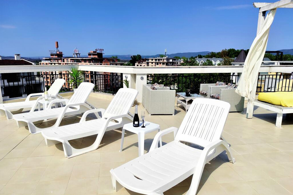 На разположението на гостите са 284 двойни стаи + 14 студиа + 3 ВИП апартаменти. Всички стаи са обзаведени с бани с душ, WC, балкон, телефон, SAT-TV, минибар и климатик.