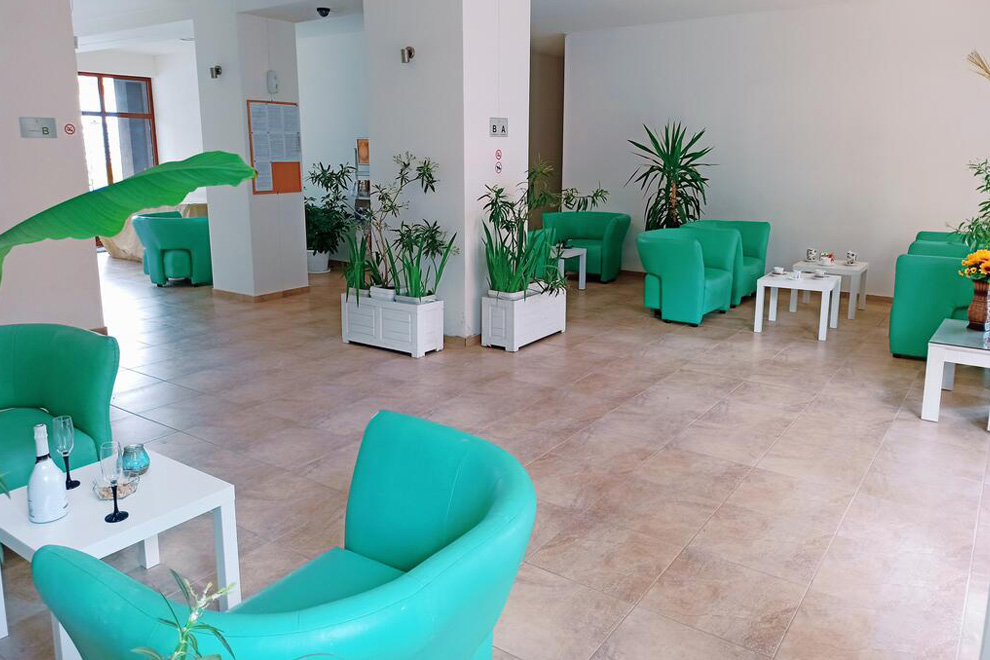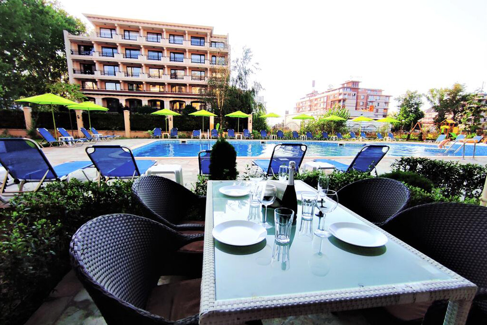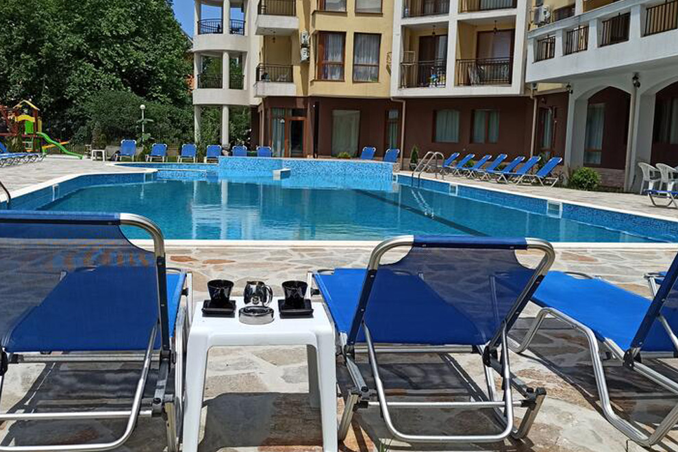 Плажът е на 250 м от хотела. На разположение на гостите има голям олимпийски басейн и малък детски, край басейна има шезлонги с чадъри