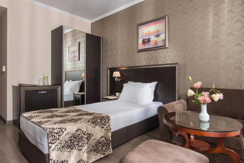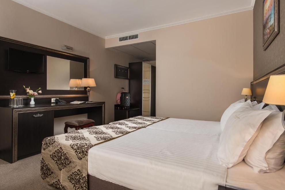 Хотелът разполага с 222 помещения, стилно обзаведени и оборудвани така, че да предлагат на своите гости всички удобства. Всяка стая разполага с индивидуален регулируем климатик, телефон с директно избиране в стаята и в банята, LCD телевизор, WI-FI интернет достъп, маса с диван/фотьойл, бюро, мини бар, сейф, гардероб с огледало в цял ръст, куфарник, санитарен възел с душ кабина, сешоар, огледало за грим, озвучаване и SOS бутон.