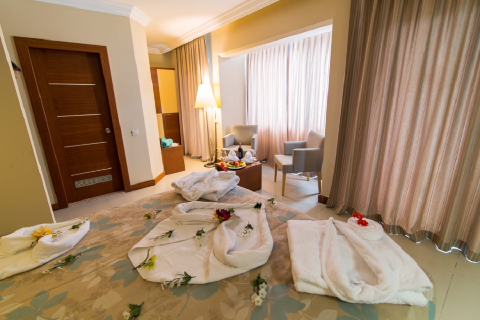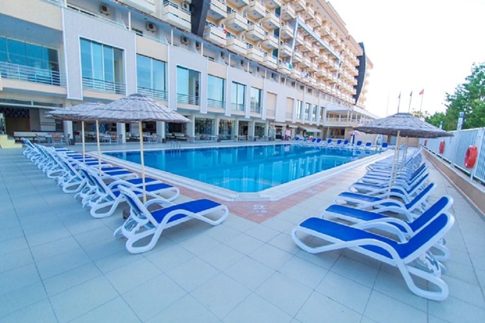 Хотелът разполага със собствен пясъчен плаж с дължина 110 метра. Има също 1 голям външен басейн (300 кв.м), 1 вътрешен басейн (70 кв.м) и 1 детски басейн (30 кв.м с дълбочина 40 см). На плажа и при басейна безплатно се предоставят се кърпи, шезлонги, чадъри и матраци.