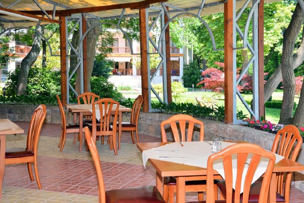 На разположение на гостите са 2 зали - с капацитет 90 и 120 места. Предлагат се разнообразни специалитети от националната и европейската кухня. Като приятно и освежаващо допълнение към всяко меню е колекция от бели и червени вина, произведени в избата на хотела от био-грозде на лозови масиви "Белоградец". Двете зали имат външни тераси, разположени под сянката на вековни дървета. През летните горещини гостите на двата хотела могат да утолят своята жажда край басейна със студена бира или разхладителни напитки, а след вечерна разходка могат да се насладят на богатия избор от алкохолни и безалкохолни коктейли, предлагани в уютната обстановка на лоби-бара в хотел "Естрея Резиденс".