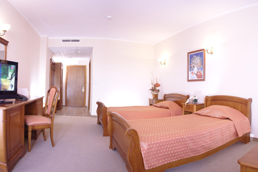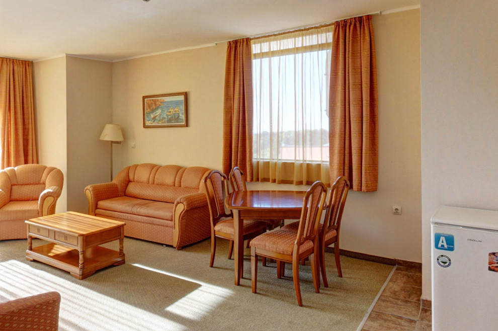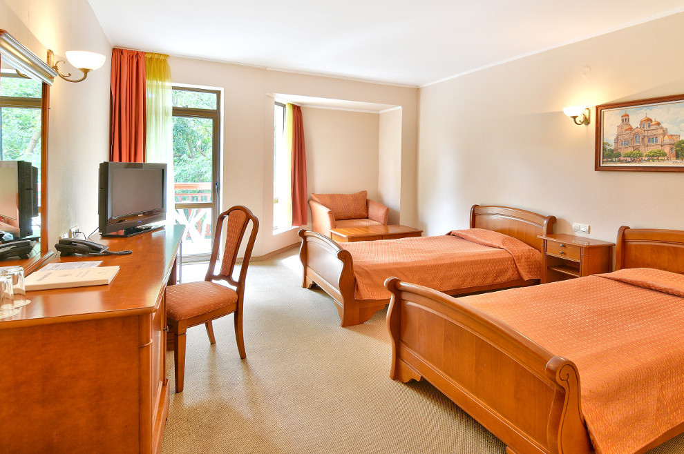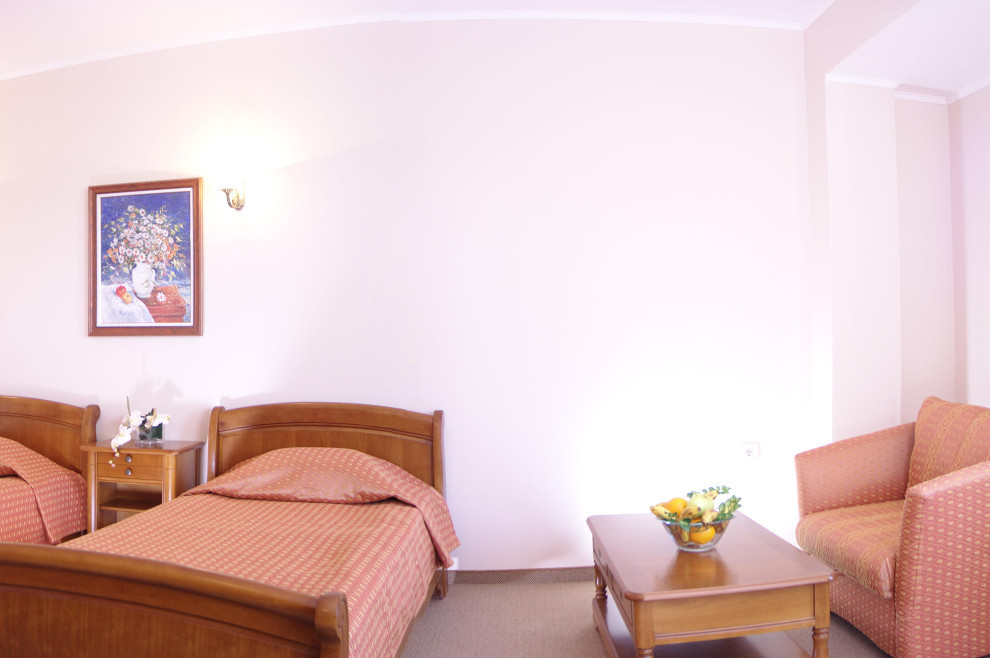 Двойните стаи в хотел "Естрея Резиденс" са с площ от 30 кв.м. В стаите има 2 единични легла или 1 двойно легло в стая + 1 разтегателен фотьойл, баня с душ-кабина и вана; сешоар, просторен балкон, сейф, кабелна телевизия, жичен и безжичен интернет, централна климатична система. Апартаментите в хотел "Естрея Резиденс" са с площ от 50 кв.м. Стаите имат разделителна врата между помещенията. Кухненският бокс е оборудван с ел. керамичен плот, абсорбатор, хладилник и термо кана, посуда и прибори за готвене и хранене. Има балкон, централен климатик, телефон, сателитна телевизия, минибар, баня с душ кабина и вана, сешоар. За допълнителните легла се използва двоен разтегателен диван.