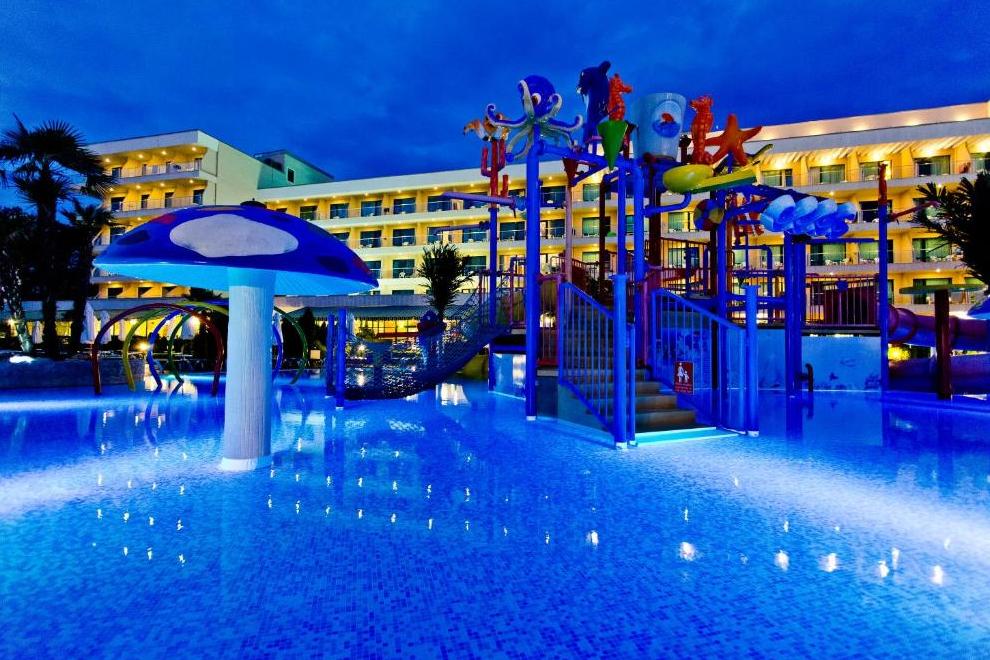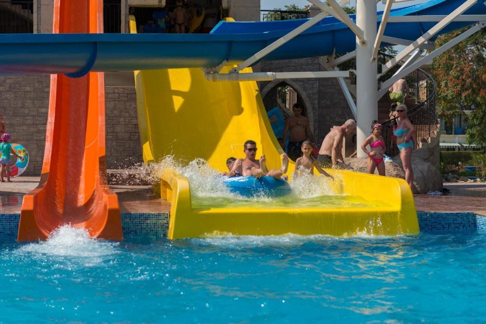 Дневна и вечерна анимация, редица спортни активности и игри около басейните и на плажа, разнообразни вечерни шоута и партита. Аквапаркът е разделен на зона за възрастни и зона за деца. Всяка от тях е снабдена с най-любимите на всички открити и закрити пързалки. За най-малките гости на хотелския комплекс е предвиден специален детски център, в който професионално подготвени аниматори се грижат за тях. Детският център се състои от мини клуб и две детски площадки. Всяка от тях е снабдена с любимите детски забавления – люлки, пързалки. Осигурени са професионални грижи за децата от всички възрасти.